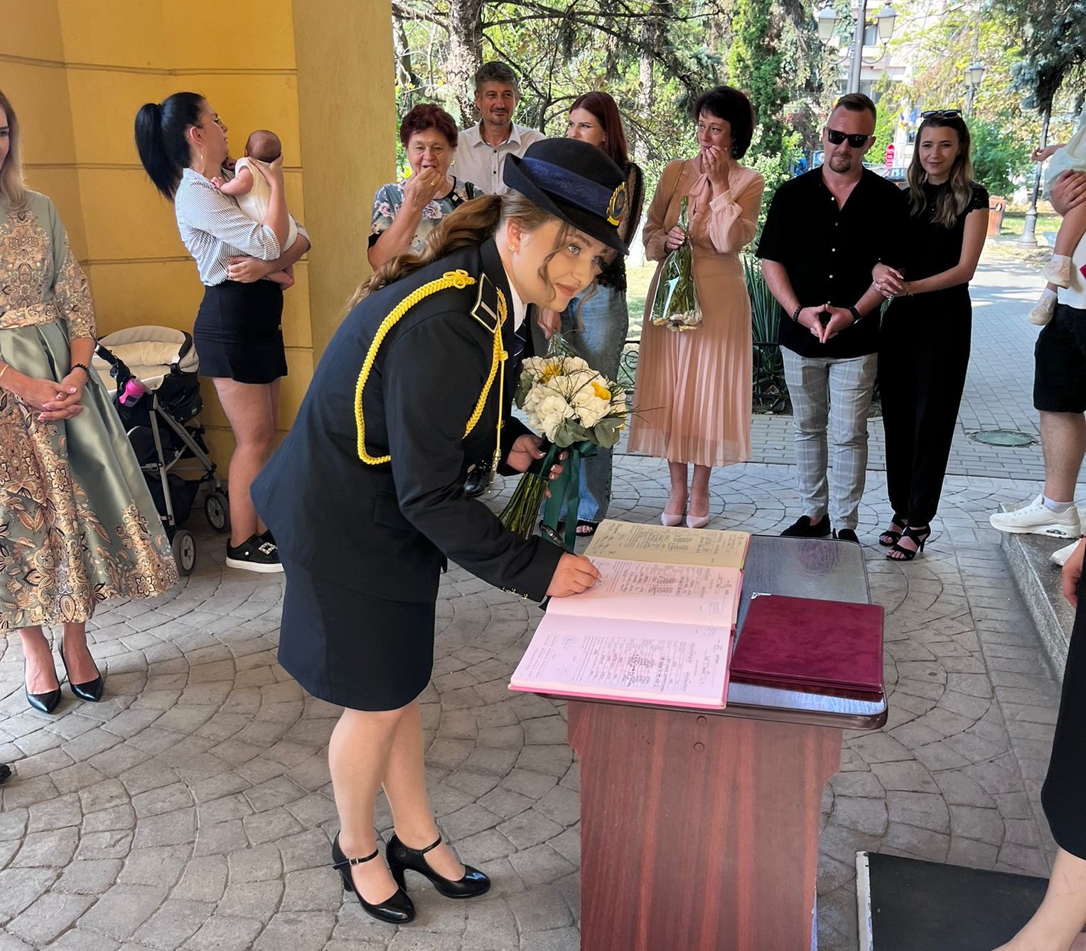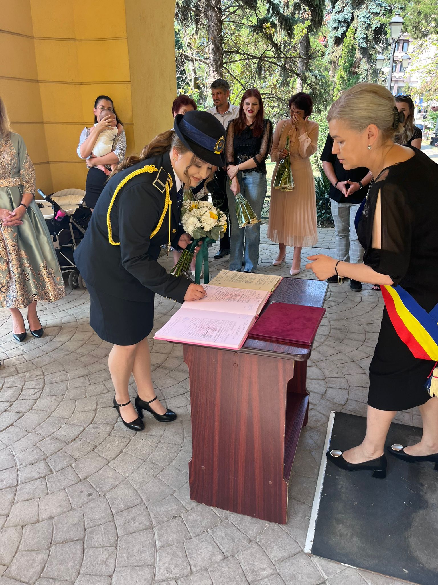 La starea civilă, amândoi au îmbrăcat ținuta oficială a polițiștilor de penitenciare. Astfel, mireasa nu a avut voal și trenă, iar mirele a renunțat la costum și papion, însă amândoi au strălucit de fericire în uniformă.