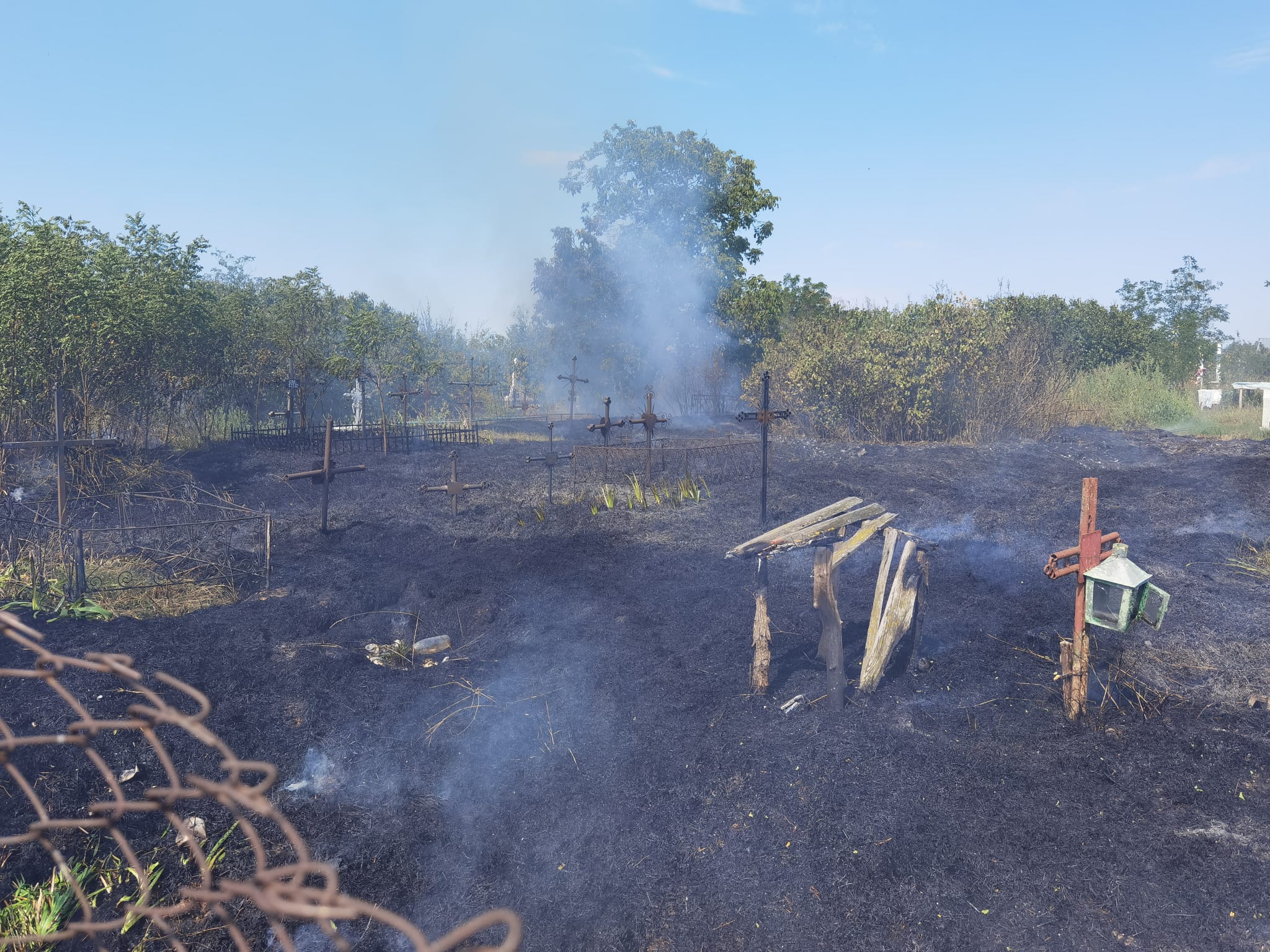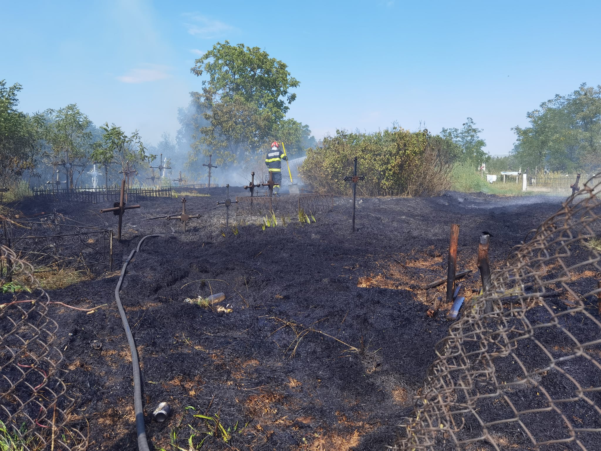 Pompierii au acționat rapid astfel încât flăcările să nu se extindă la întregul cimitir, dar și la mai multe utilaje agricole și un depozit de cereale. Suprafața afectată a fost estimată la aproximativ două hectare.