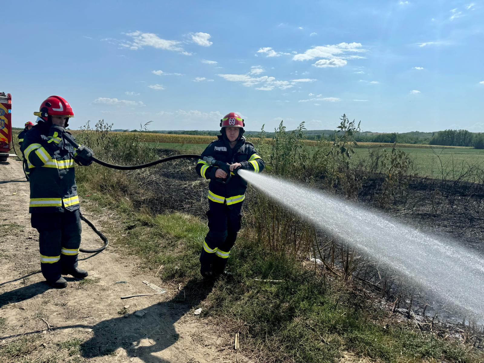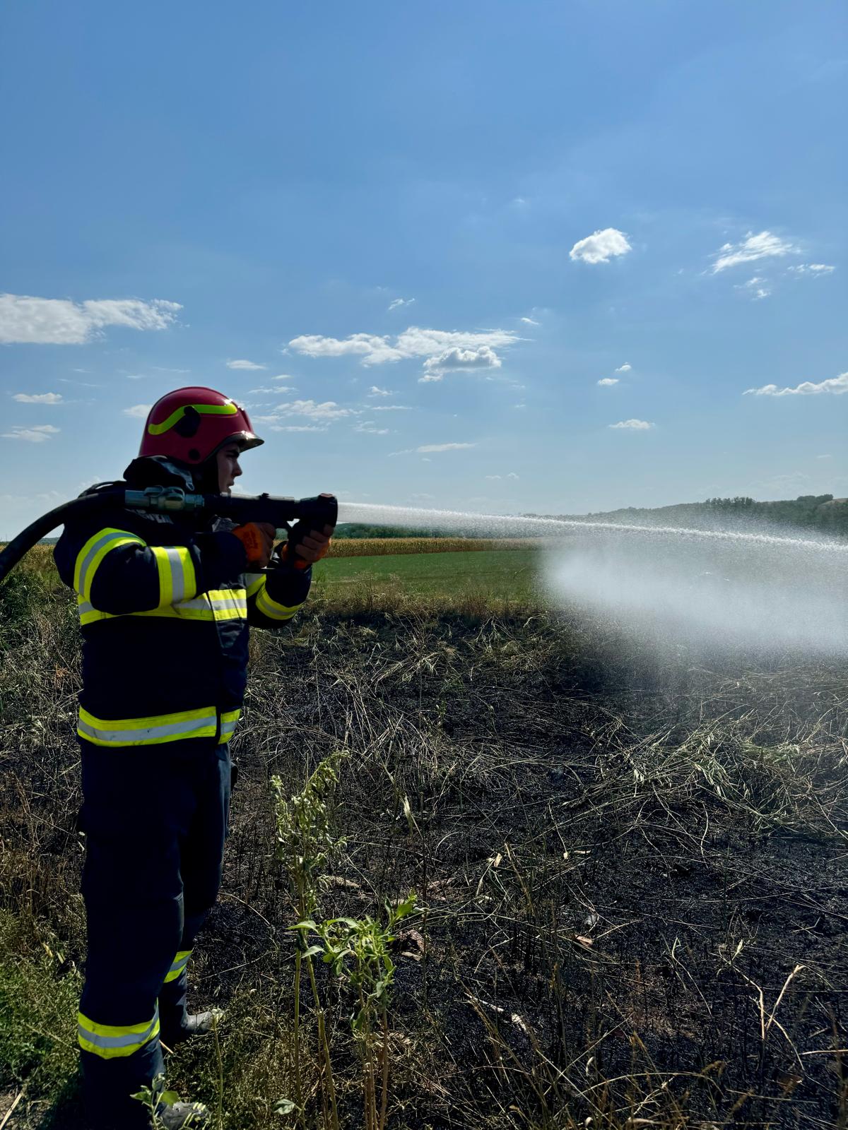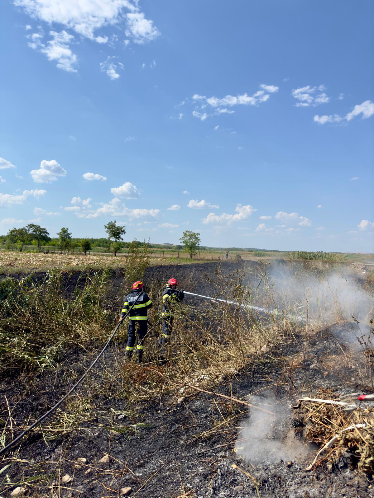 La Bobulești: a ars vegetația uscată de pe aproximativ 3000 de metri pătrați. Pompierii au intervenit rapid astfel încât flăcările să nu ajungă la un lan de porumb.