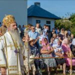 După citirea pasajelor scripturistice specifice slujbei de târnosire, soborul slujitor a înconjurat biserica, binecuvântând zidurile locașului cu Sfântul și Marele Mir și cu apă sfințită. În continuare, Părintele Mitropolit Teofan, dimpreună cu preoții prezenți s-au îndreptat spre Sfântul Altar, unde potrivit rânduielilor bisericești a fost târnosită și pecetluită Sfânta Masă.
