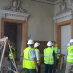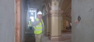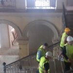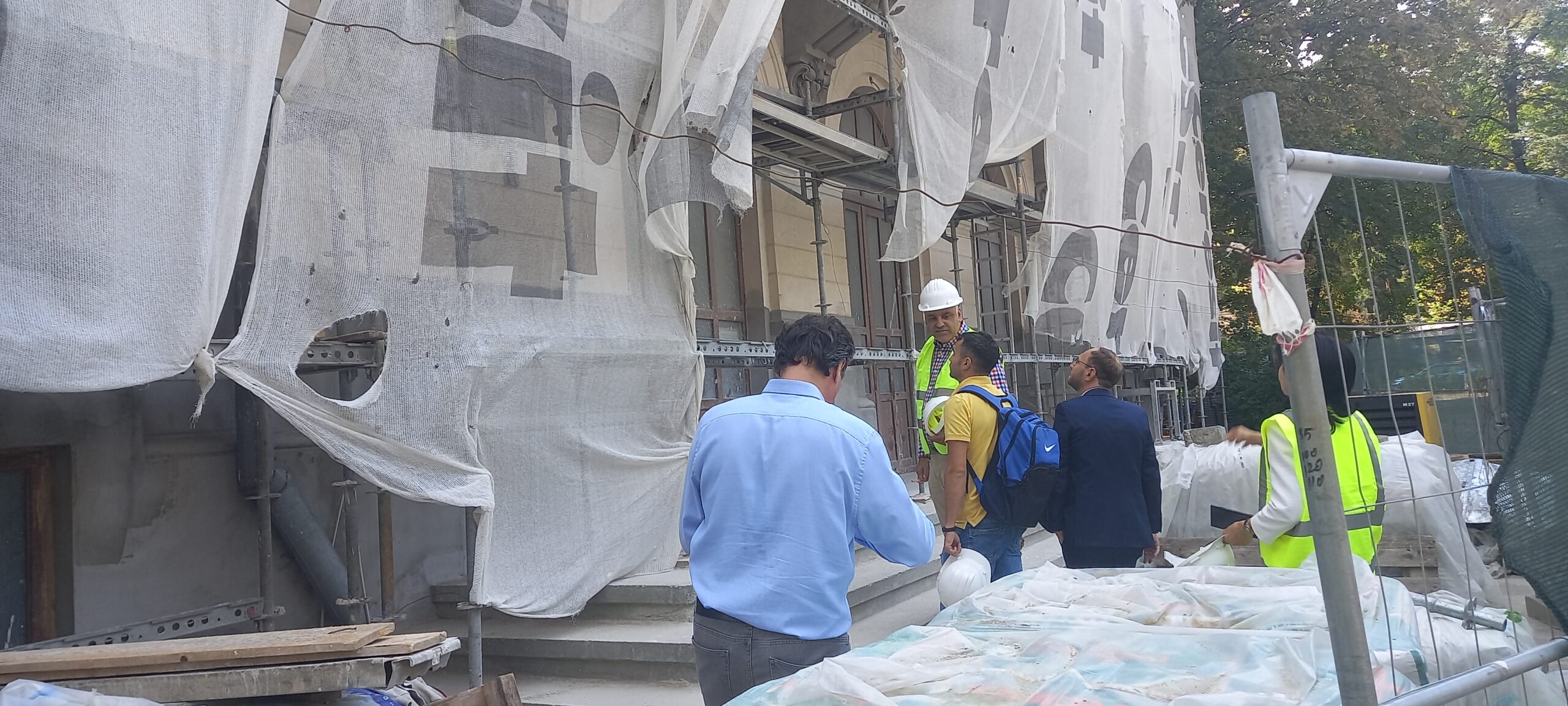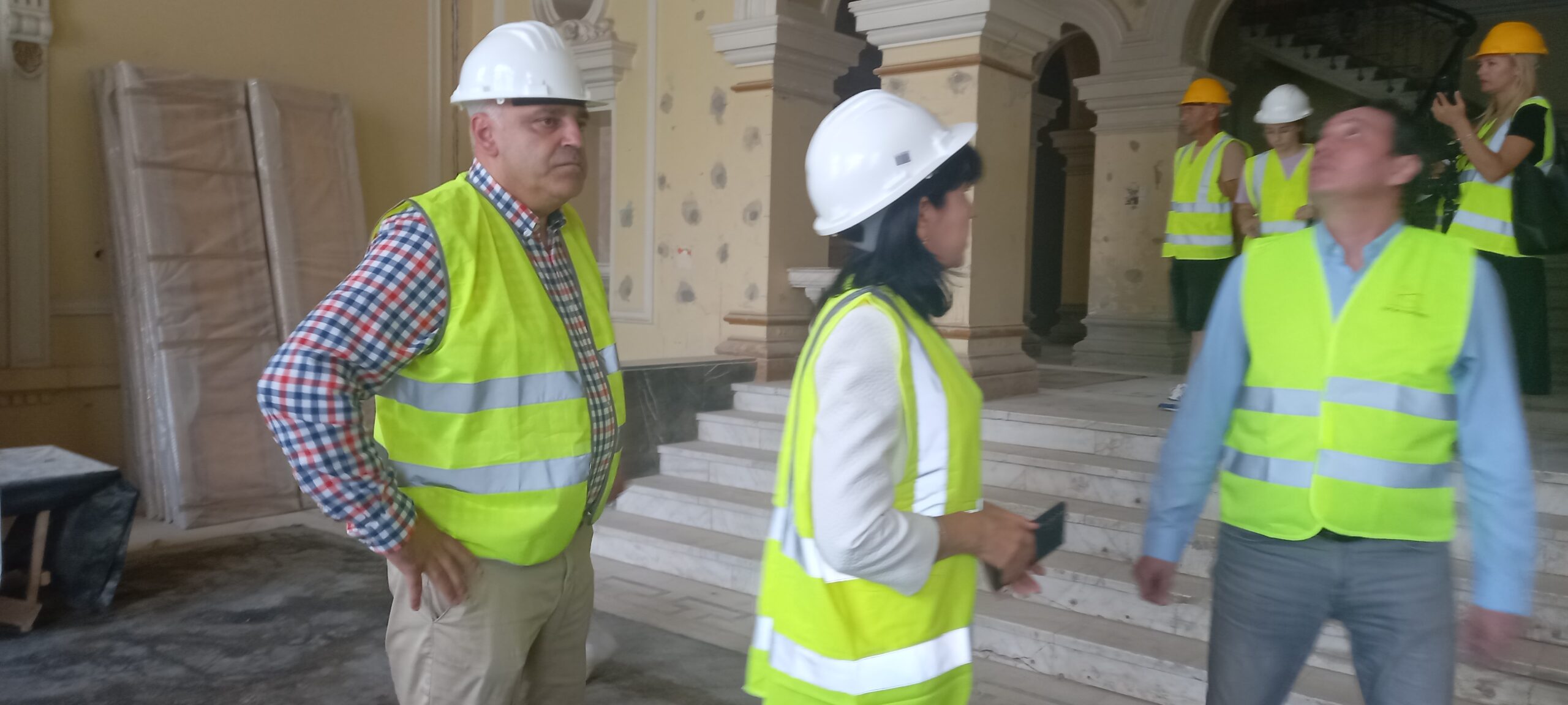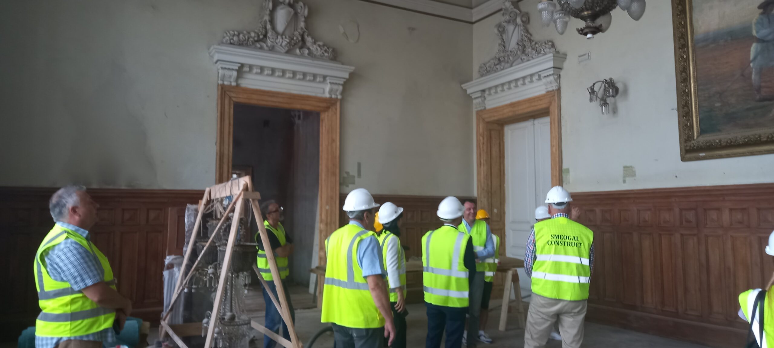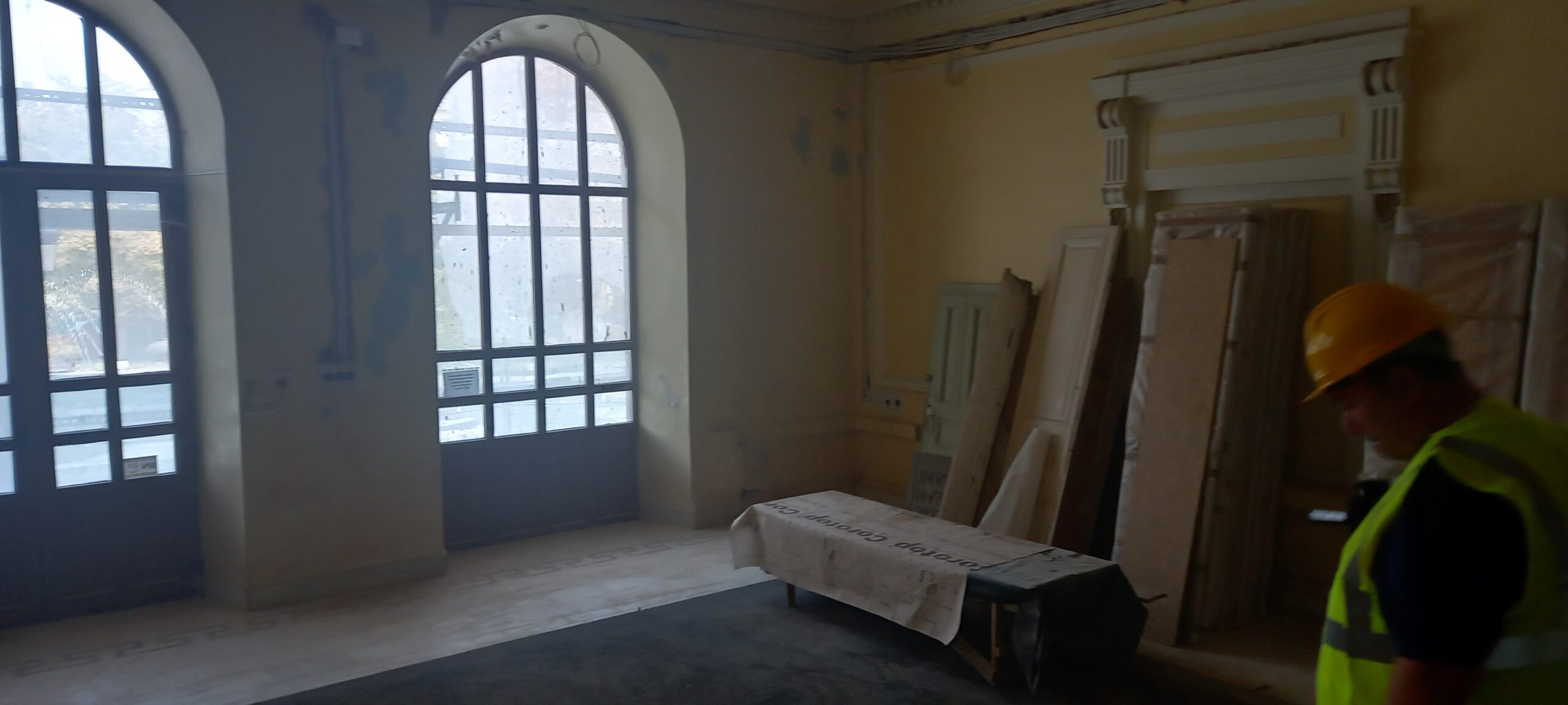 ”La partea de parter a început restaurarea ușilor de lemn. Toate ușile de lemn de la parter vor fi restaurate, iar la momentul acesta se lucrează la curățarea tocurilor în situ, adică direct la fața locului. Ca să le desfacem, devine imposibil să le remontăm la loc în poziția lor, ca ușile să fie funcționale. Per total, lucrările sunt realizate la 60-65% din proiect. Ne dorim să predăm lucrarea mai repede, dar urmează o etapă foarte importantă în cadrul proiectului, restaurarea componentei artistice, ne referim la pictura, candelabru din sala oglizilor, ornamente, unde este un proces mai de durată și mai minuțios”, a declarat reprezentantul firmei de construcții.