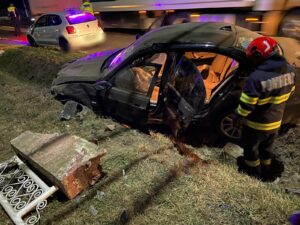 FOTO Accident grav la Botoșani! Un tânăr a fost rănit, după ce a ajuns cu mașina într-un șant