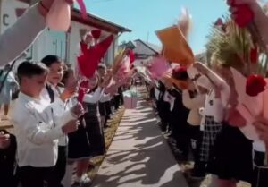Imagini emoționante, în prima zi de școală, la un liceu din județul Botoșani. Vizibil emoționați și cu flori în mâini, elevii au realizat un impresionant „tunel” din flori.