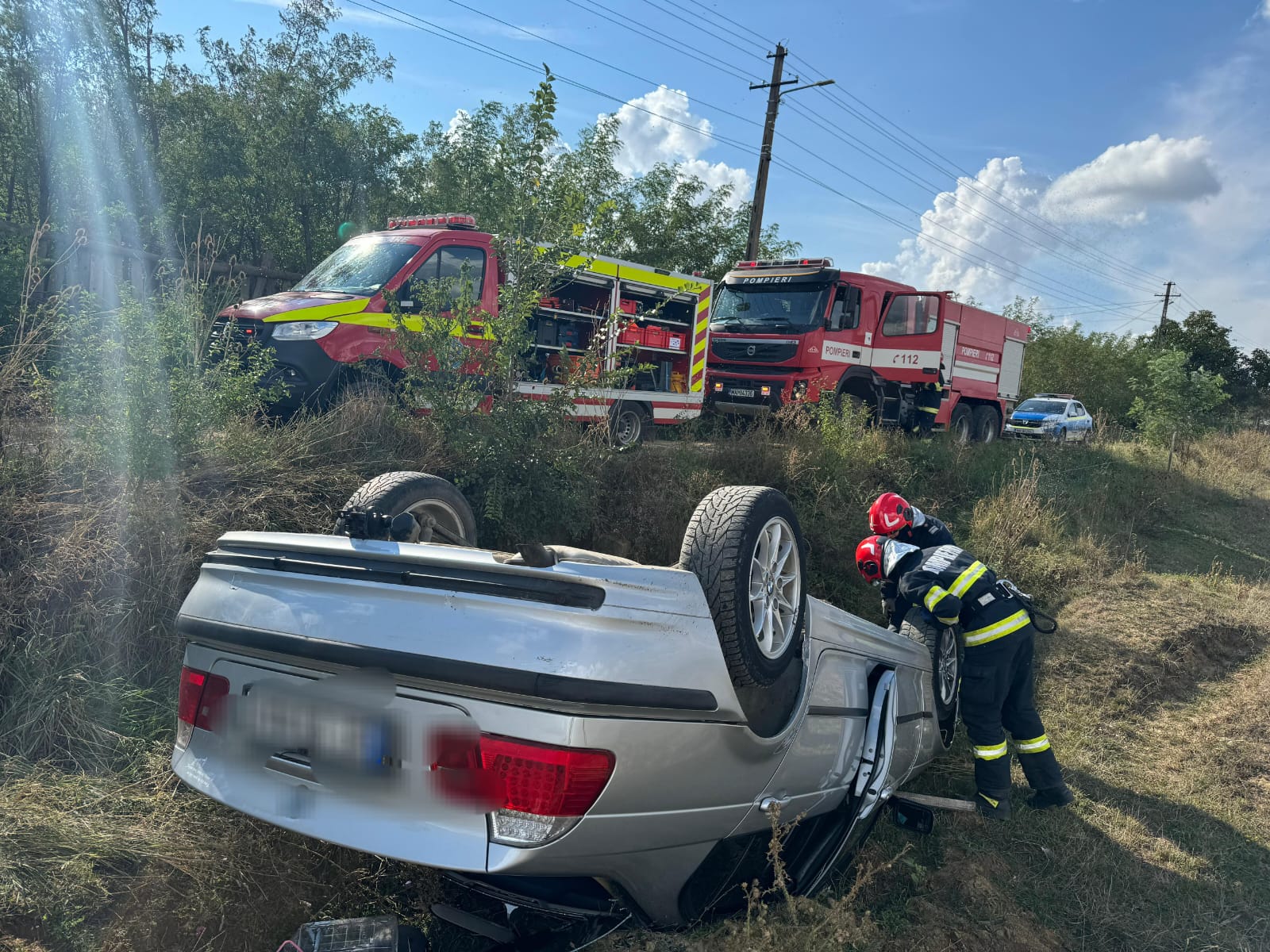 FOTO Accident într-o localitate din Botoșani! O femeie s-a răsturnat cu mașina