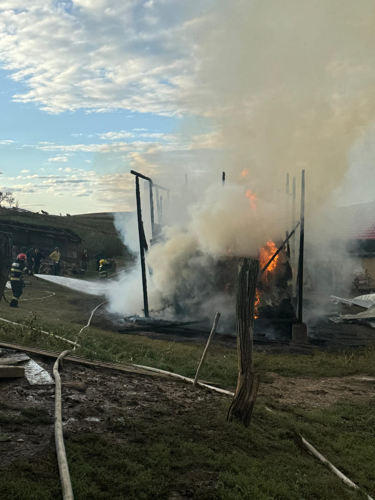 FOTO Incendiu violent de la un trăsnet, într-o localitate din Botoșani! Pompierii s-au luptat ore întregi cu flăcărie