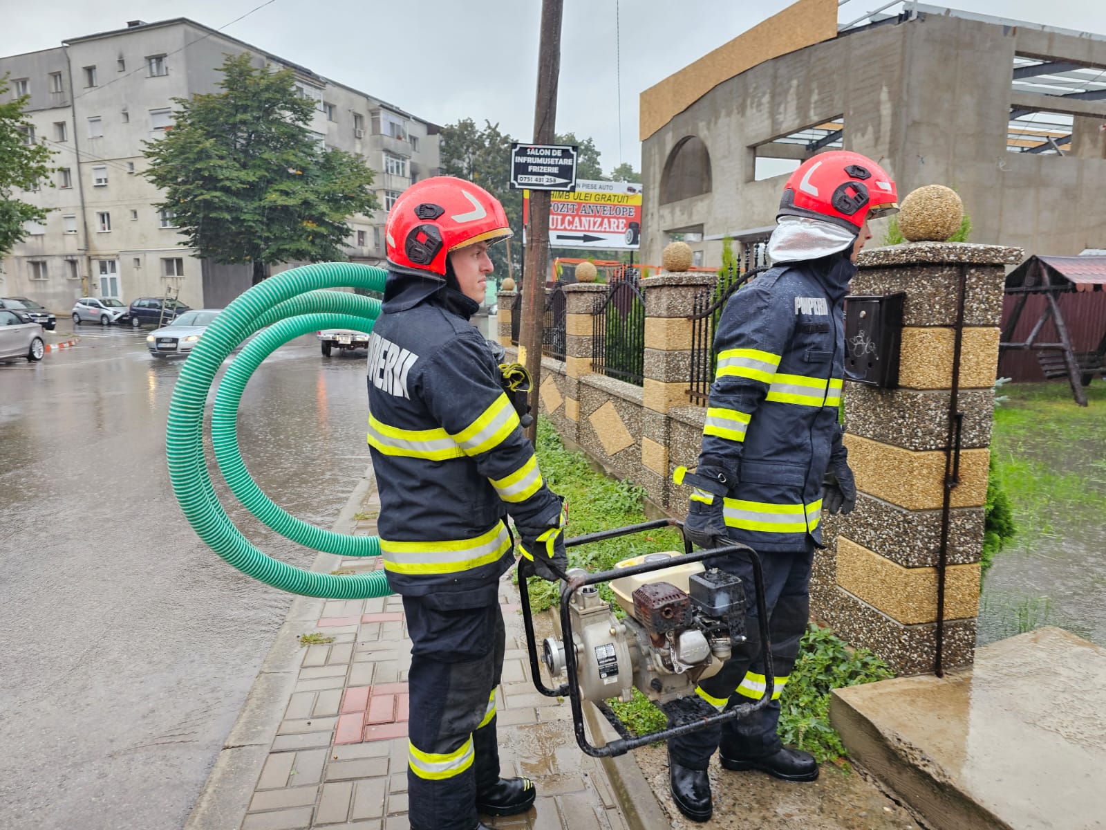 De asemenea, pe strada Împărat Traian, unde subsolul unei case și curtea erau inundate. S-a intervenit cu motopompa pentru evacuarea apei, iar la Spitalul de Recuperare unde subsolul era inundat. Au fost evacuați aproximativ patru metri cubi de apă.