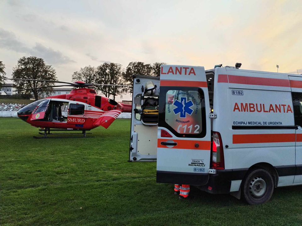 Elicoperul SMURD a aterizat pe Stadionul Municipal 1 Mai Dorohoi, iar pompierii de la Detașamentul de Pompieri Dorohoi au asigurat masurile de aterizare și decolare a aeronavei SMURD.