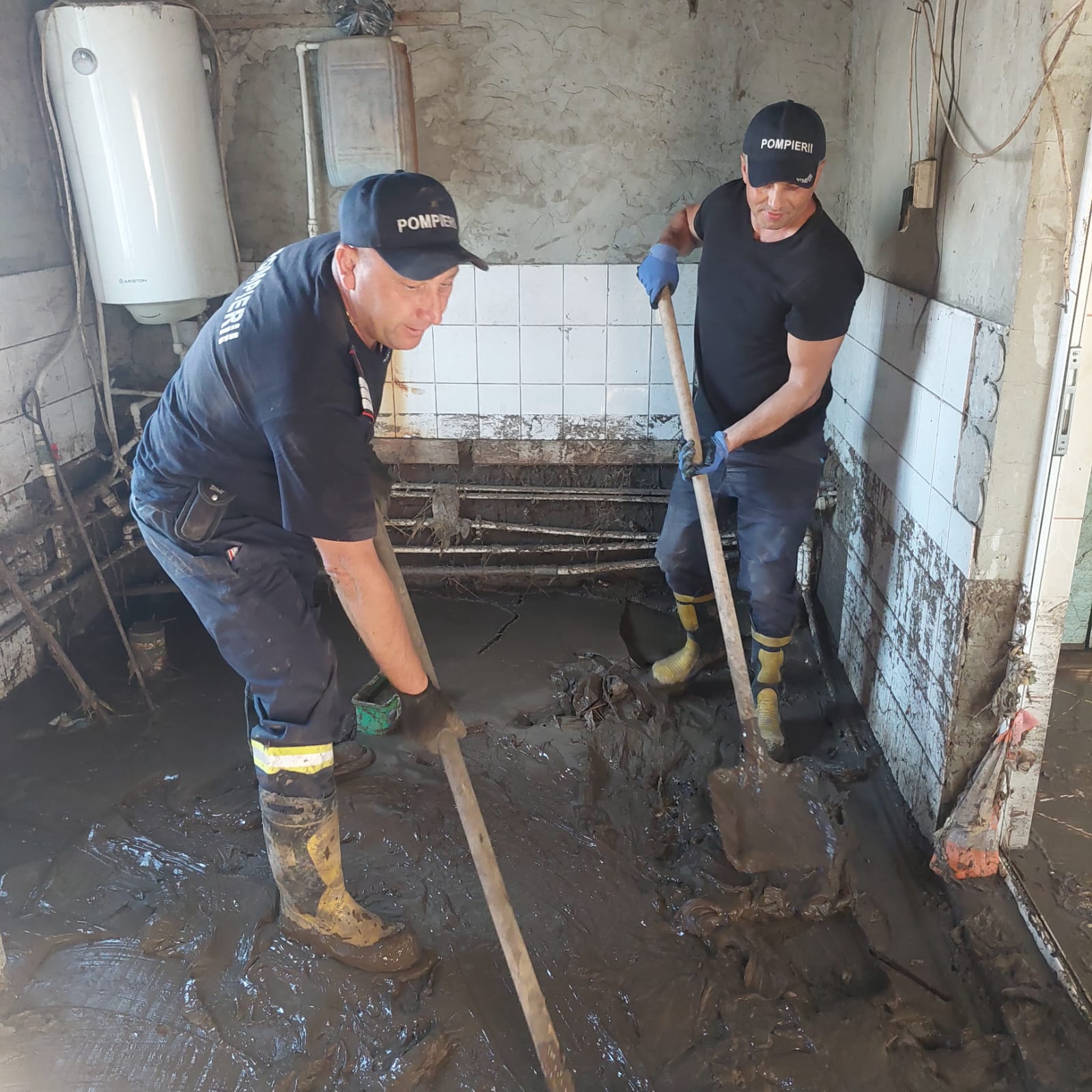 Aceștia intervin de dimineață până seara pentru a evacua apa și mâlul din locuințe și gospodării și fac tot posibilul pentru a salva și bunurile acestor oameni.
