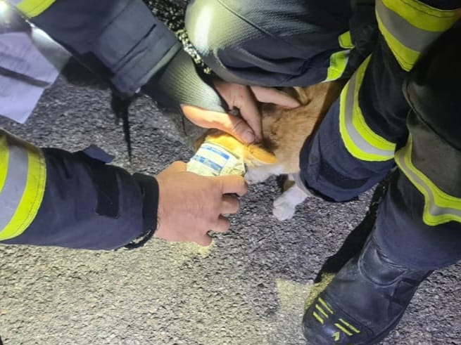 Poficioasă peste măsură, o pisică a dat de necaz când a găsit o conservă cu hrană pentru feline pe stradă. Fără să stea pe gânduri, a bagat capul și rămas blocată. Zgomotul făcut de pisică în încercarea de a se elibera i-a atras atenția unui bărbat. Acesta și-a dat seama că nu poate să o ajute și a sunat la pompieri.