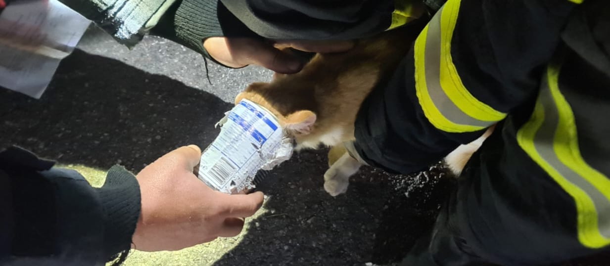 FOTO Un botoșănean a sunat la pompieri pentru a salva o pisică. Animăluțul și-a prins capul într-o conservă