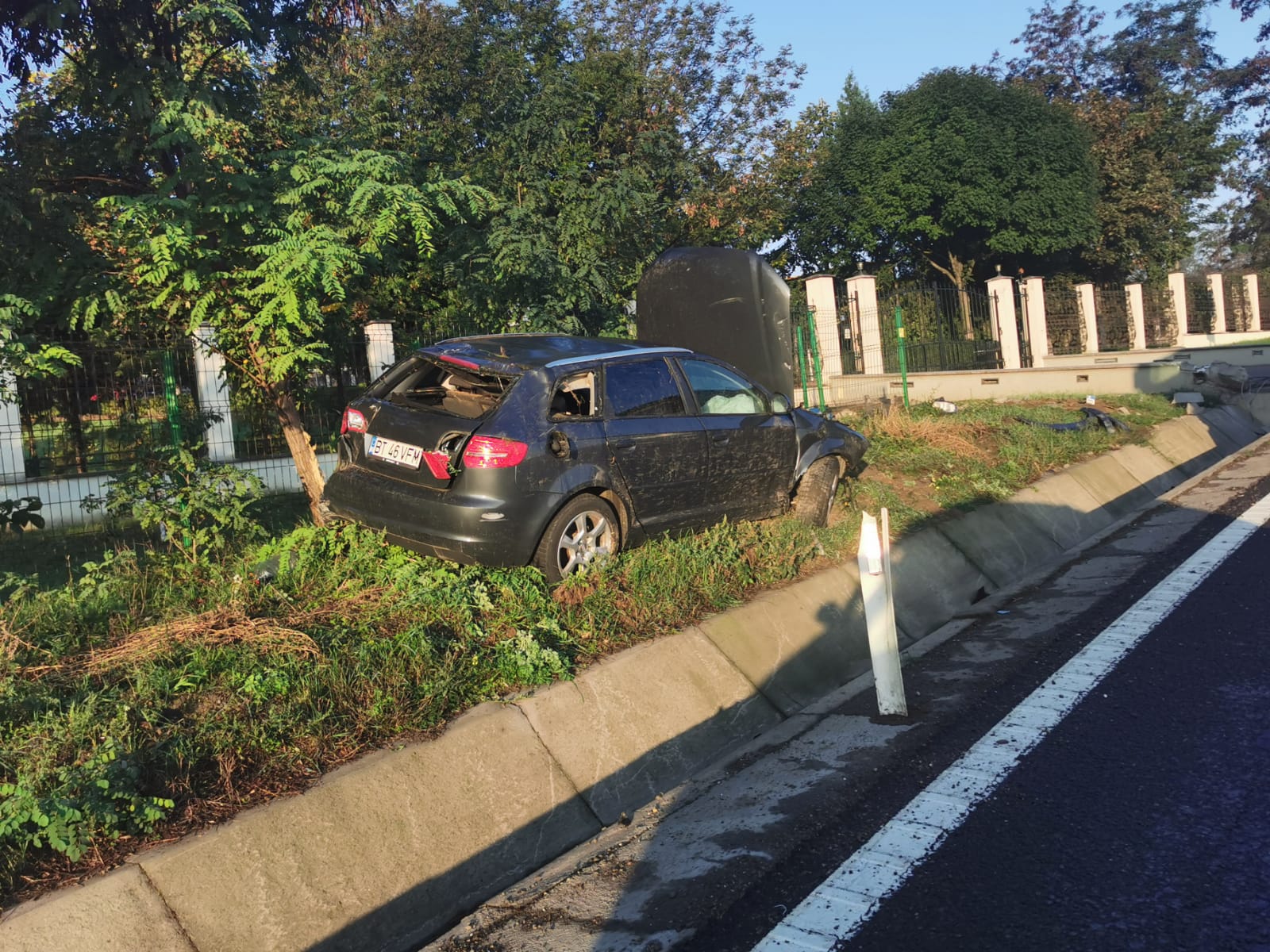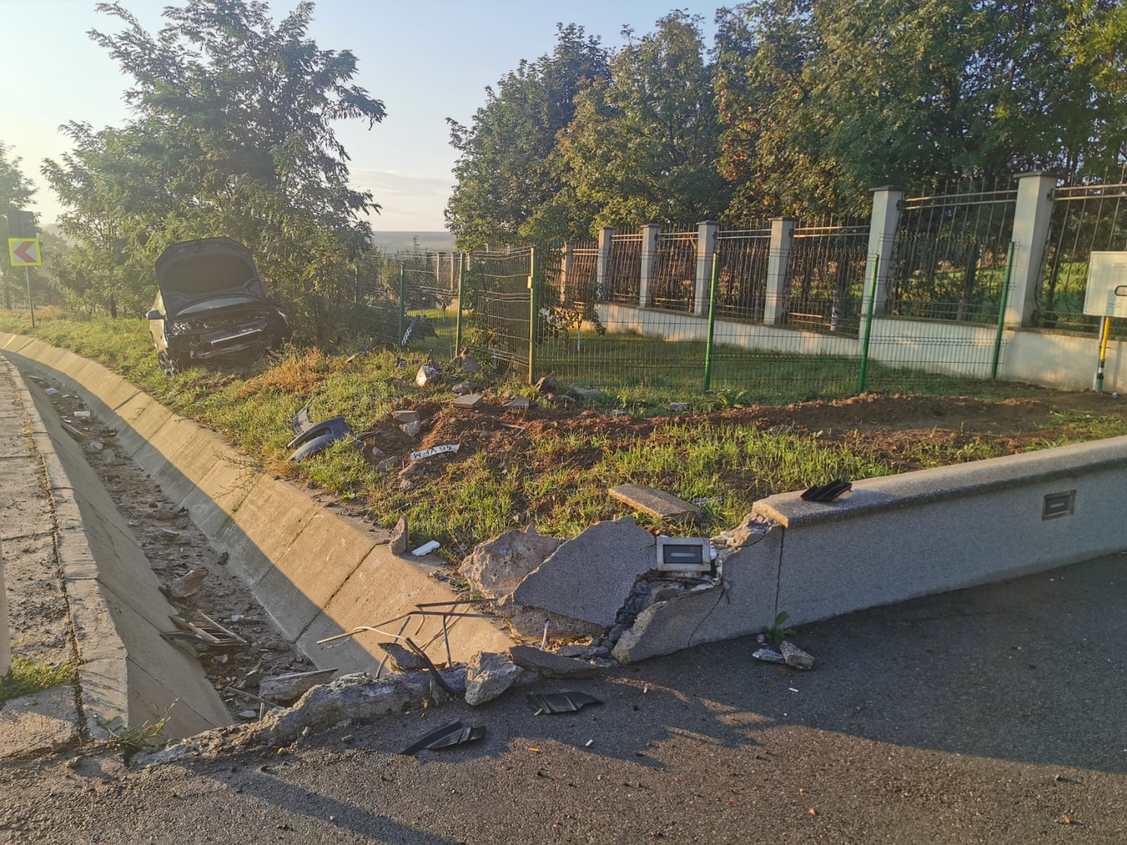 FOTO Accident la Botoşani! Maşină distrusă după ce a lovit un cap de pod pe E58