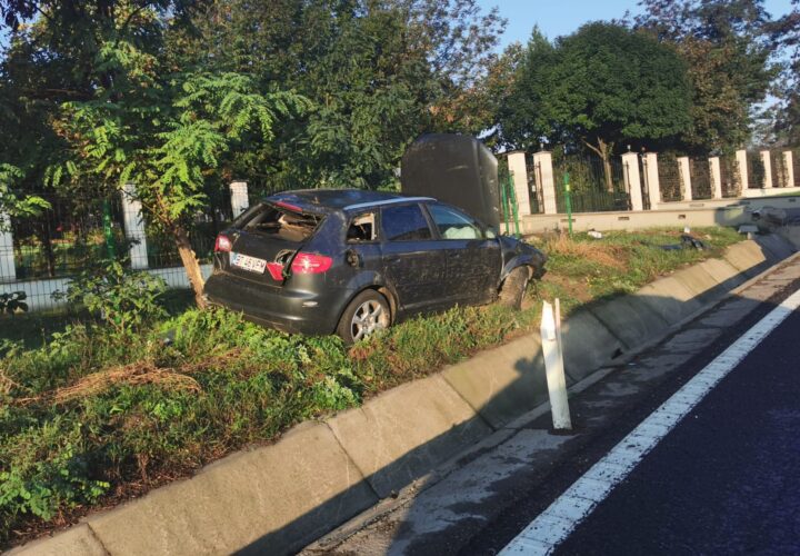 FOTO Accident la Botoşani! Maşină distrusă după ce a lovit un cap de pod pe E58