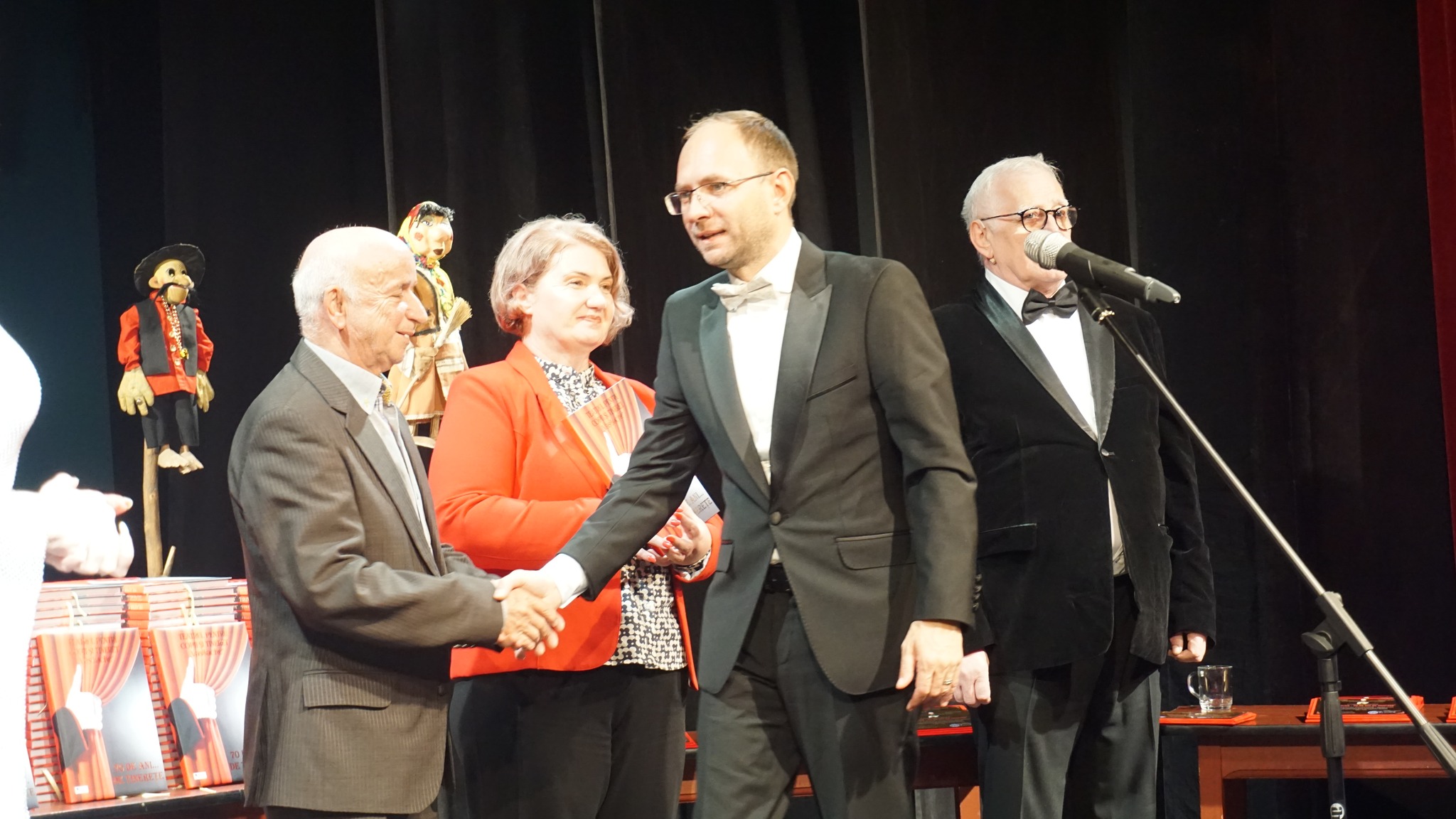 Ceremonia a continuat cu decernarea premiilor oferite spectatorilor câştigători ai Programului „Povestiri din copilărie”, ediţiile 2023 şi 2024, precum şi cu oferirea distincţiilor aniversare „Vasilache – 70 de ani de tinereţe” salariaţilor Teatrului „Vasilache”, partenerilor culturali şi prietenilor instituţiei care şi-au adus contribuţia pentru un fragment din fericirea copiilor.