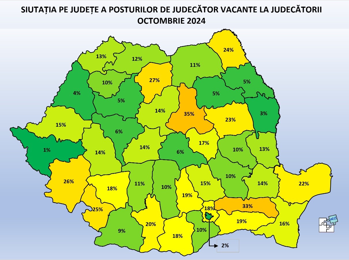 Un număr de 22 de instanțe sunt cu un deficit mai mic sau egal cu 10%; 60 de instanțe cu grad de ocupare 100%; 6 instanțe cu deficit mai mare sau egal cu 50%.