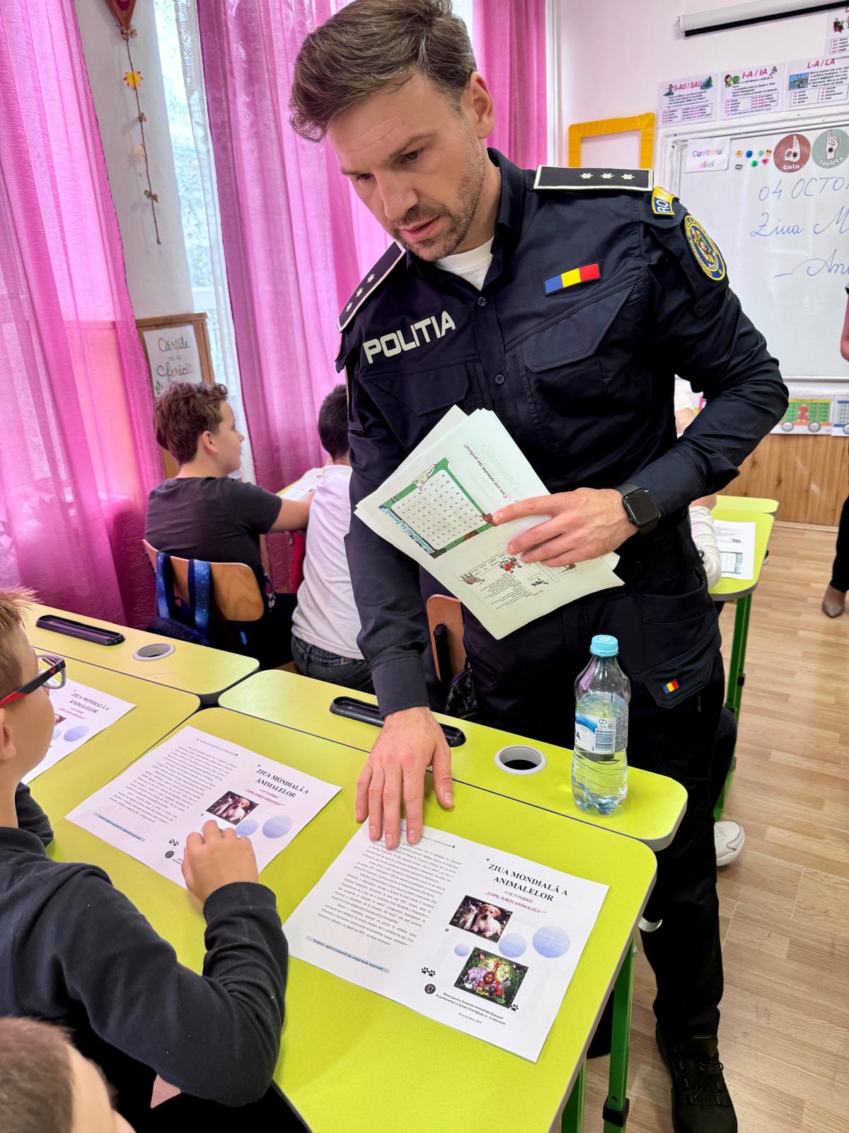 Astfel, astăzi, 4 octombrie 2024, polițiștii din cadrul Biroului pentru Protecția Animalelor au desfășurat activități de informare cu elevii Școlii Gimnaziale nr. 11 din municipiul Botoșani.