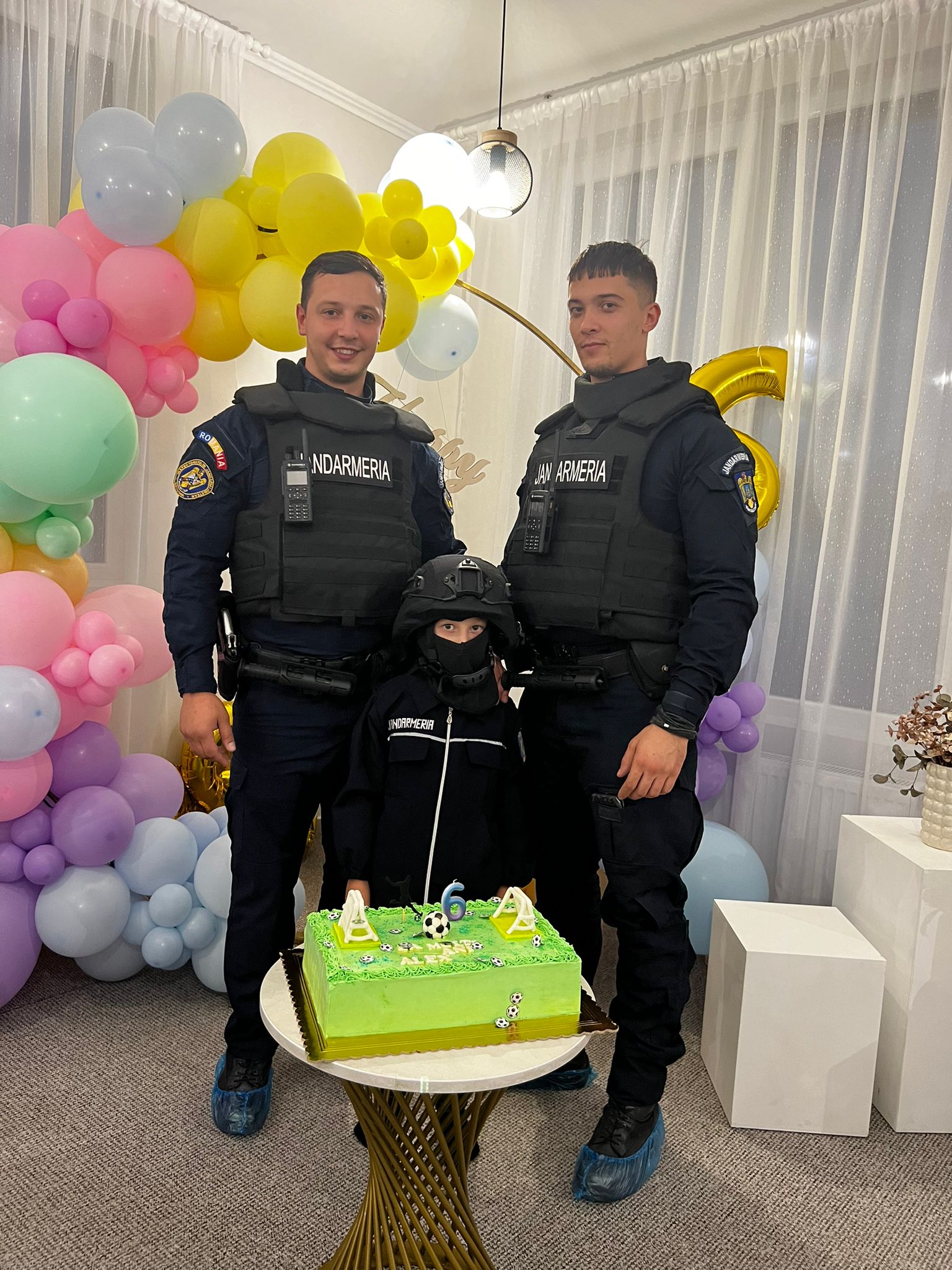 Pe lângă frumoasa petrecere organizată de părinți, la împlinirea vârstei de șase ani, el a avut parte de o surpriză specială din partea jandarmilor dorohoieni, care au aflat despre pasiunea lui Alexandru pentru tot ce înseamnă Jandarmeria Română și au dorit neapărat să îl felicite.