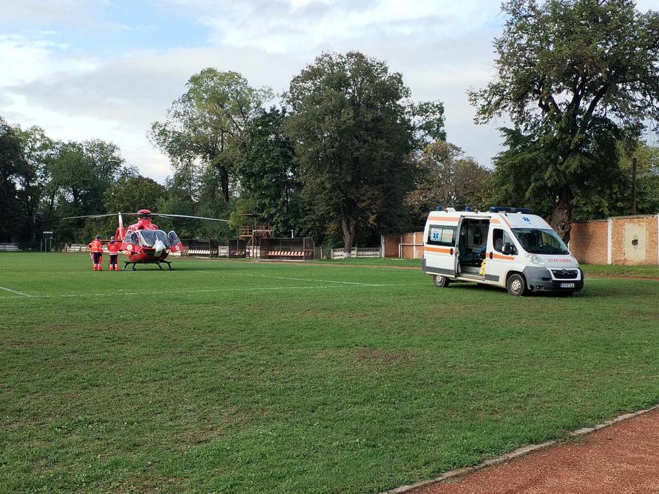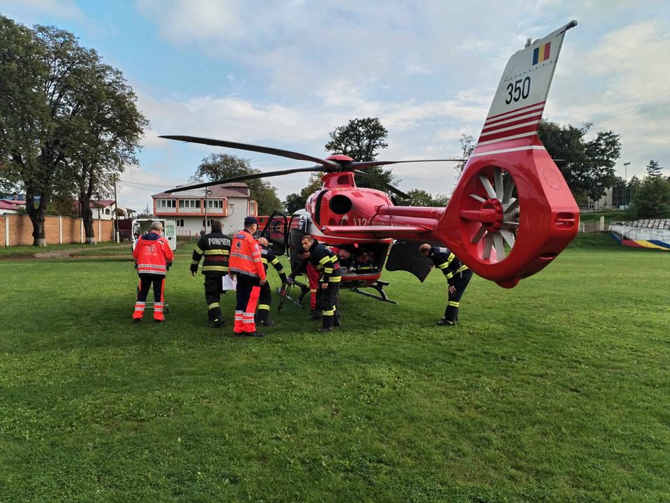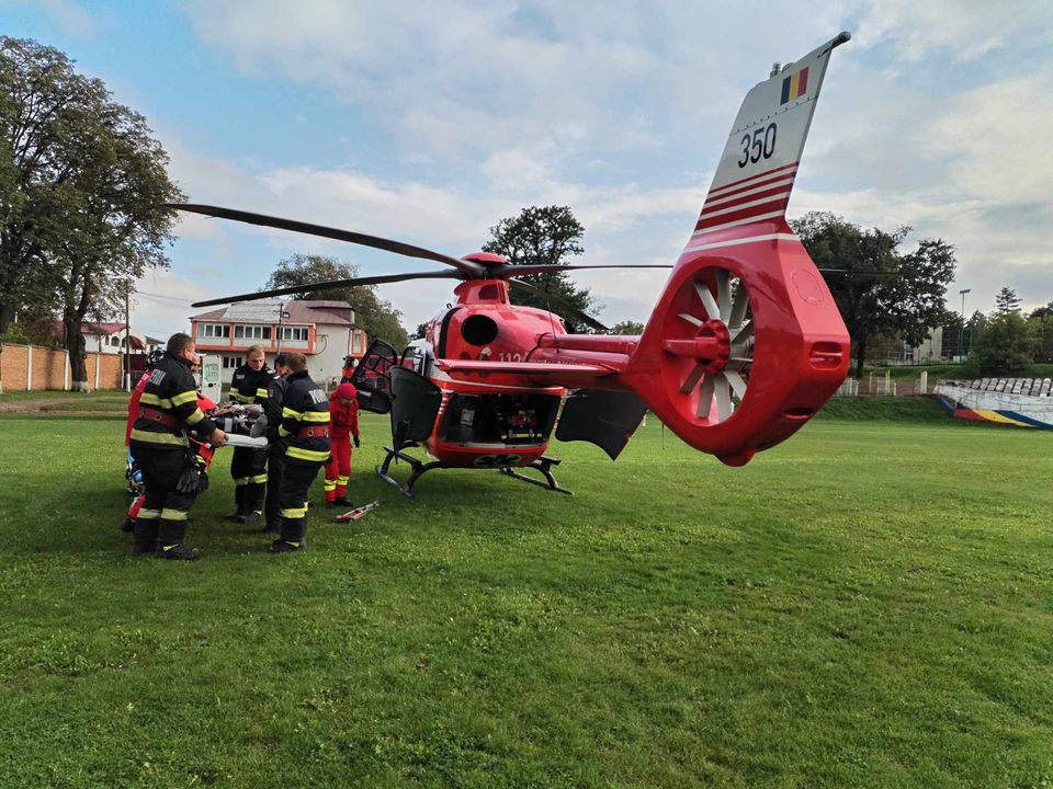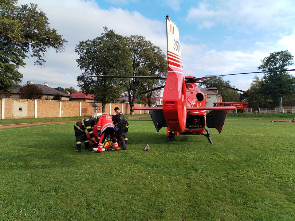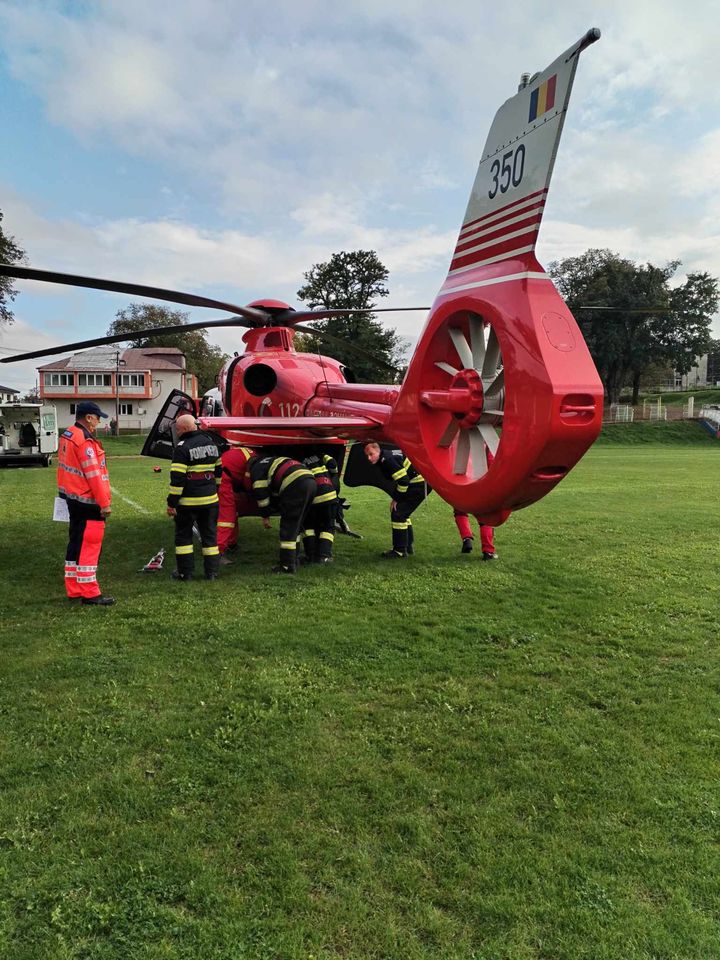 Aeronava SMURD a aterizat pe terenul de pe stadionul 1 Mai Dorohoi pentru a-l prelua pe bărbat. Acesta va ajunge la o clinică de specialitate din Iași.