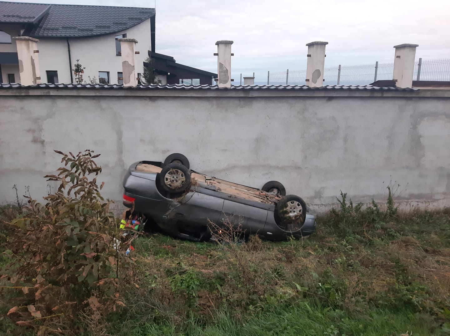 Un accident rutier a avut loc sâmbătă dimineață, în județul Suceava. Un autoturism s-a răsturnat în afara părții carosabile pe raza localității Cumpărătura.