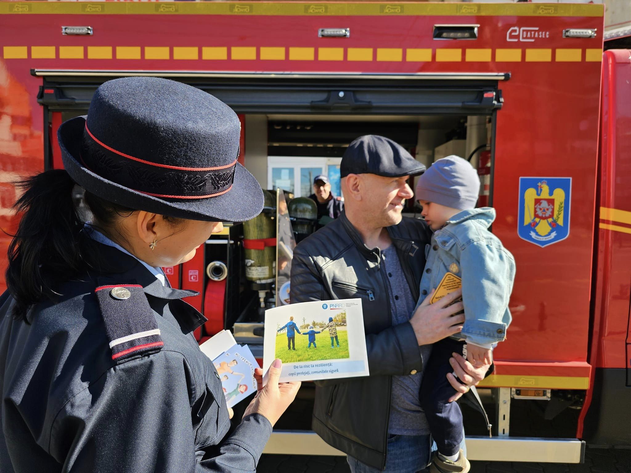 Pompierii le-au prezentat tuturor broșura “De la risc la reziliență: copii protejați, comunitate sigură”, care oferă informații despre importanța protejării în fața dezastrelor, dar și materiale dedicate copiilor cu vârsta cuprinsă între 6-10 ani, respectiv “Supraviețuitorii la cutremur, la incendii și la inundații”.