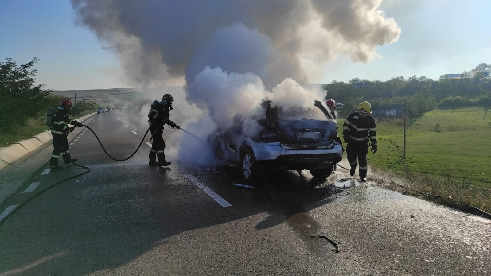 O mașină a luat foc, duminică după-amiază, în timp ce se deplasa pe un drum din localitatea Roma. Conducătorul auto a observat că iese fum de sub capotă, a oprit mașina, a coborât imediat și a sunat după ajutor la 112. La caz s-au deplasat pompierii din cadrul Detașamentului Botoșani, cu o autospecială de stingere cu apă și spumă.