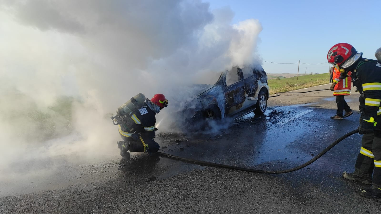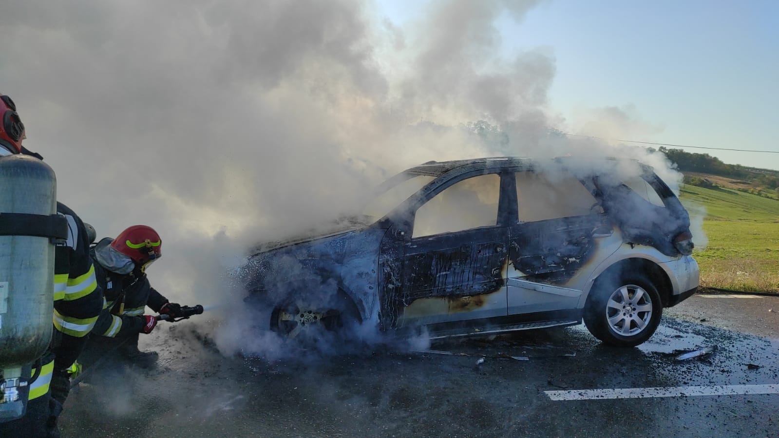 Aceștia au constatat faptul că autoturismul ardea în totalitate. Incendiul a fost stins în limitele găsite. Din fericire nu au fost persoane rănite. Cel mai probabil evenimentul s-a produs din cauza unui scurtcircuit, spun reprezentanții Inspectoratului Județean pentru Situații de Urgență.