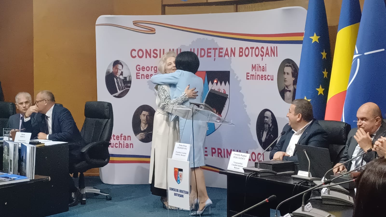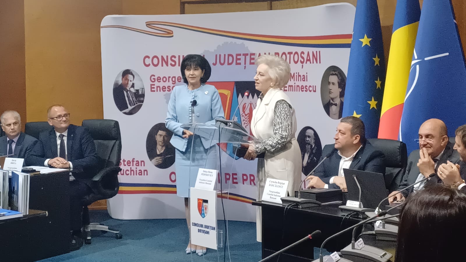La rândul lor, consilierii au oferit o distincție Doinei Federovici pentru „cel mai performant președinte din istoria Consiliului Județean”.