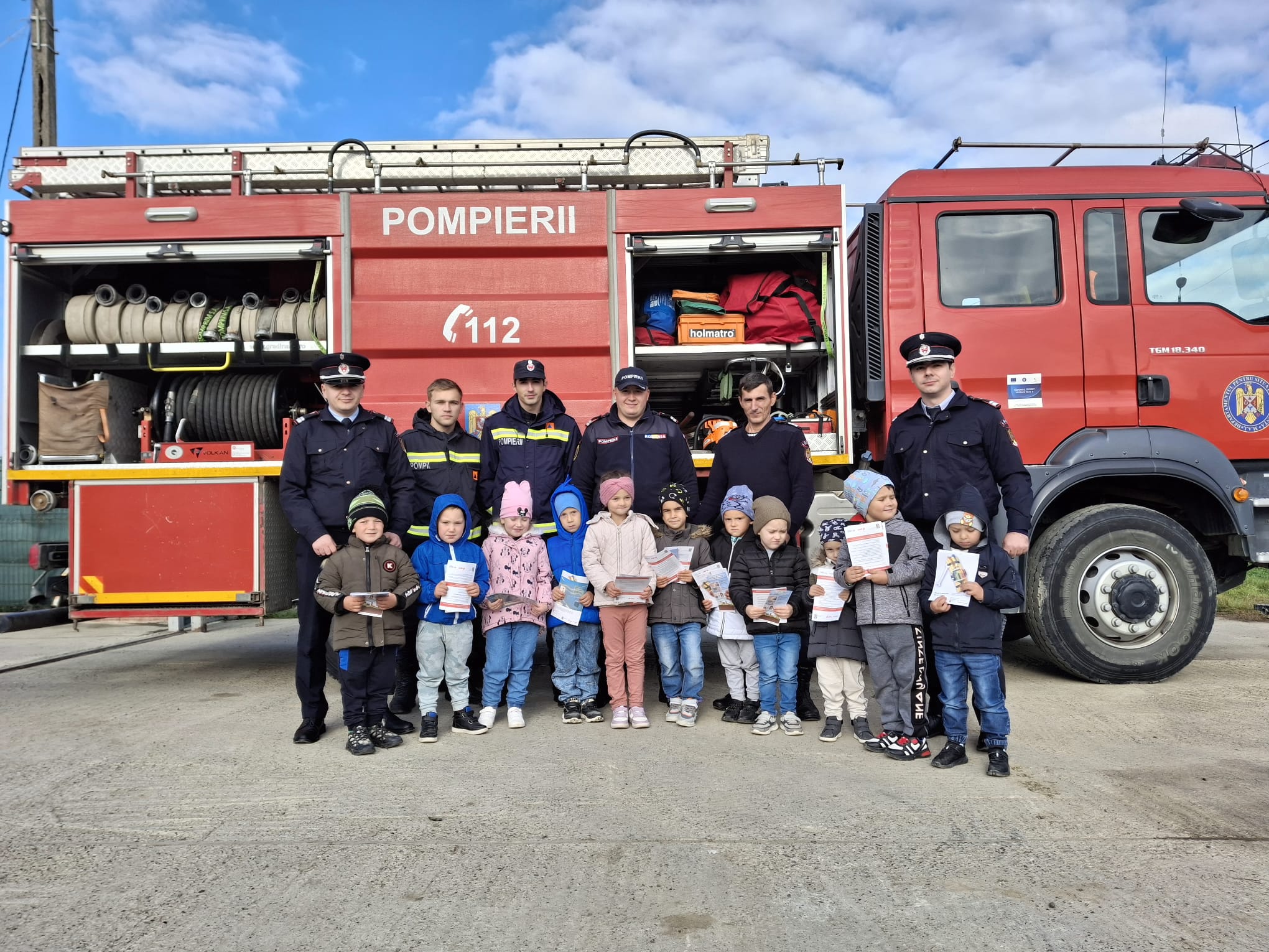 Copiii au avut ocazia să studieze, îndeaproape, autospecialele folosite în misiunile pirotehnice, de stingere a incendiilor sau acordare a primului ajutor și au ascultat cu interes cum funcționează fiecare accesoriu, în parte.