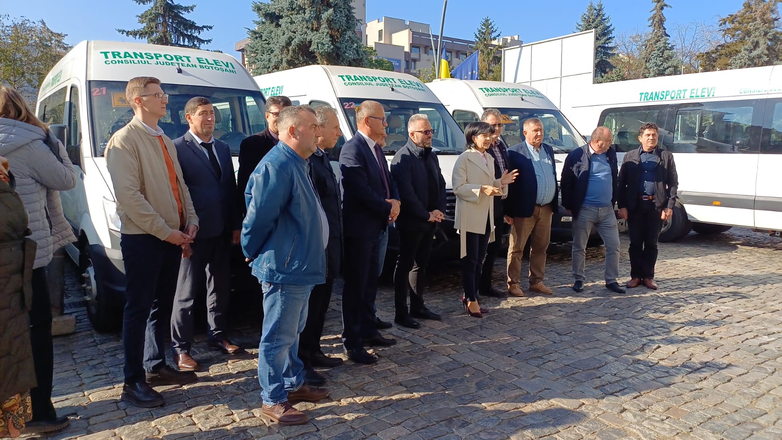 „Din primul lot, de 26 de microbuze, astăzi aveți în fața dumneavoastră primele nouă, urmând ca până la finalul lunii noiembrie să fie adusă la Botoșani și diferența până la 26. Mai avem în procedură de achiziție, în acest moment, pentru că știți că din suma totală de 7,1 milioane de euro, noi am rămas cu un rest să-i spunem în urma licitației și am inițiat o nouă procedură de achiziție, care este în acest moment în curs. Prin această achiziție completăm gama de microbuze cu încă zece. Pe partea cealaltă, a microbuzelor hibrid, am semnat contractul de furnizare. În total, la nivelul județului Botoșani, prin Consiliul Județean, 54 de unități administrativ teritoriale vor fi dotate cu microbuze electrice pe de o parte și hibrid pe de altă parte”, a declarat președintele CJ în exerciciu, Doina Federovici.