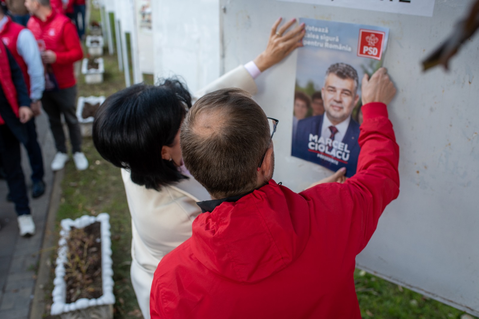 Social democrații au lipit primele afișe cu Marcel Ciolacu, candidatul PSD la funcția de președinte al României.