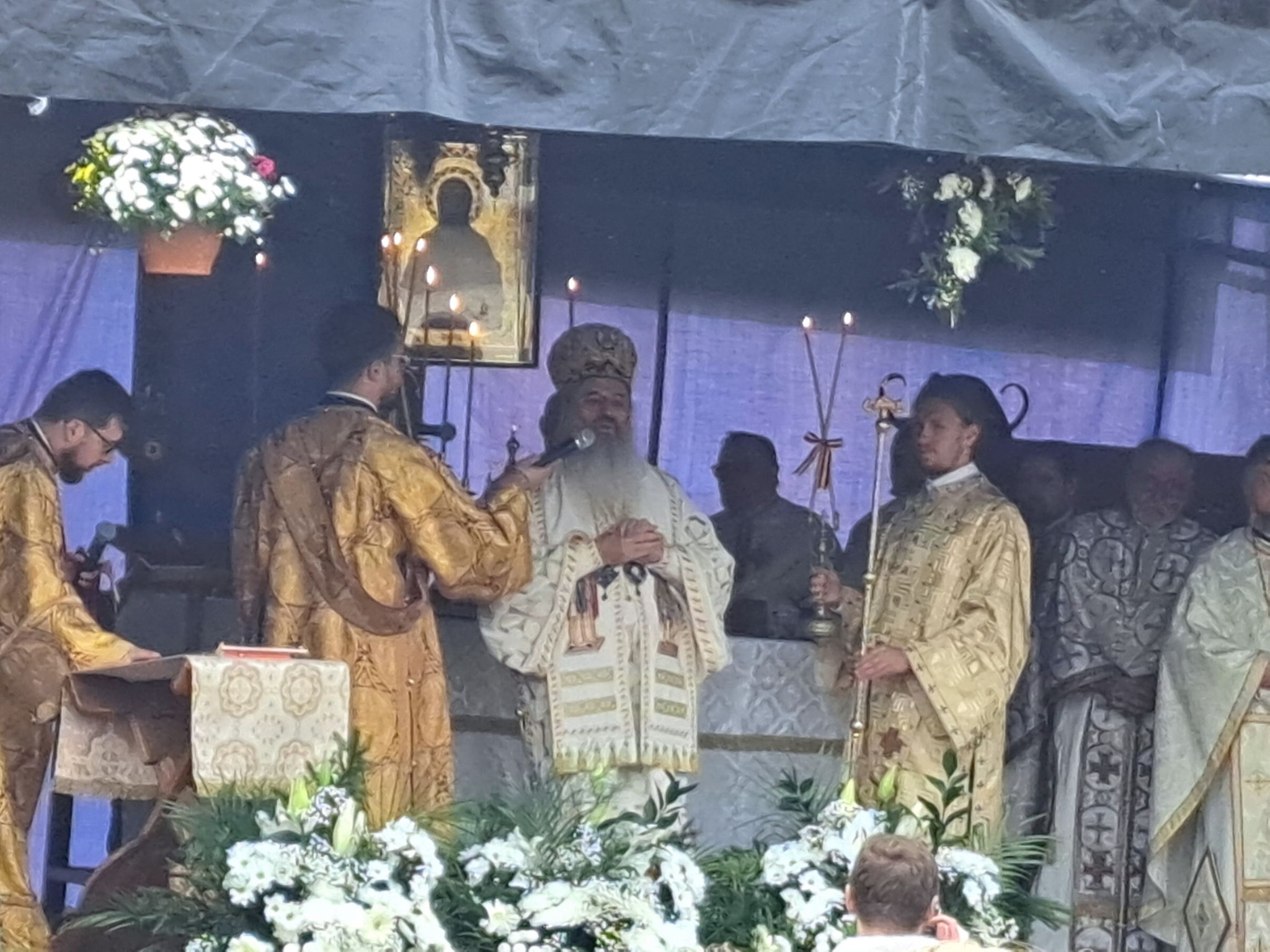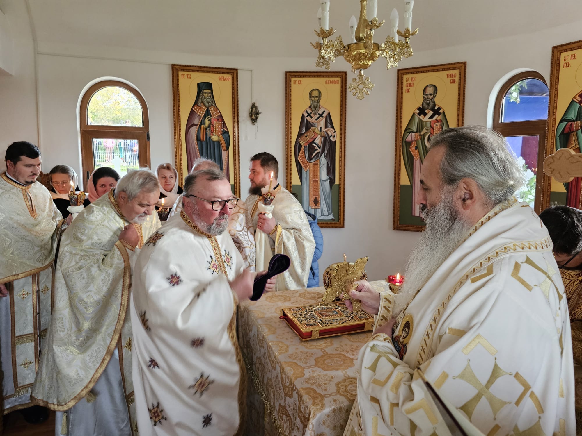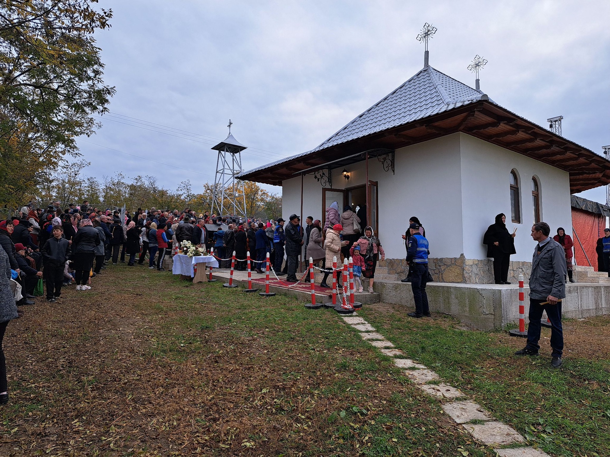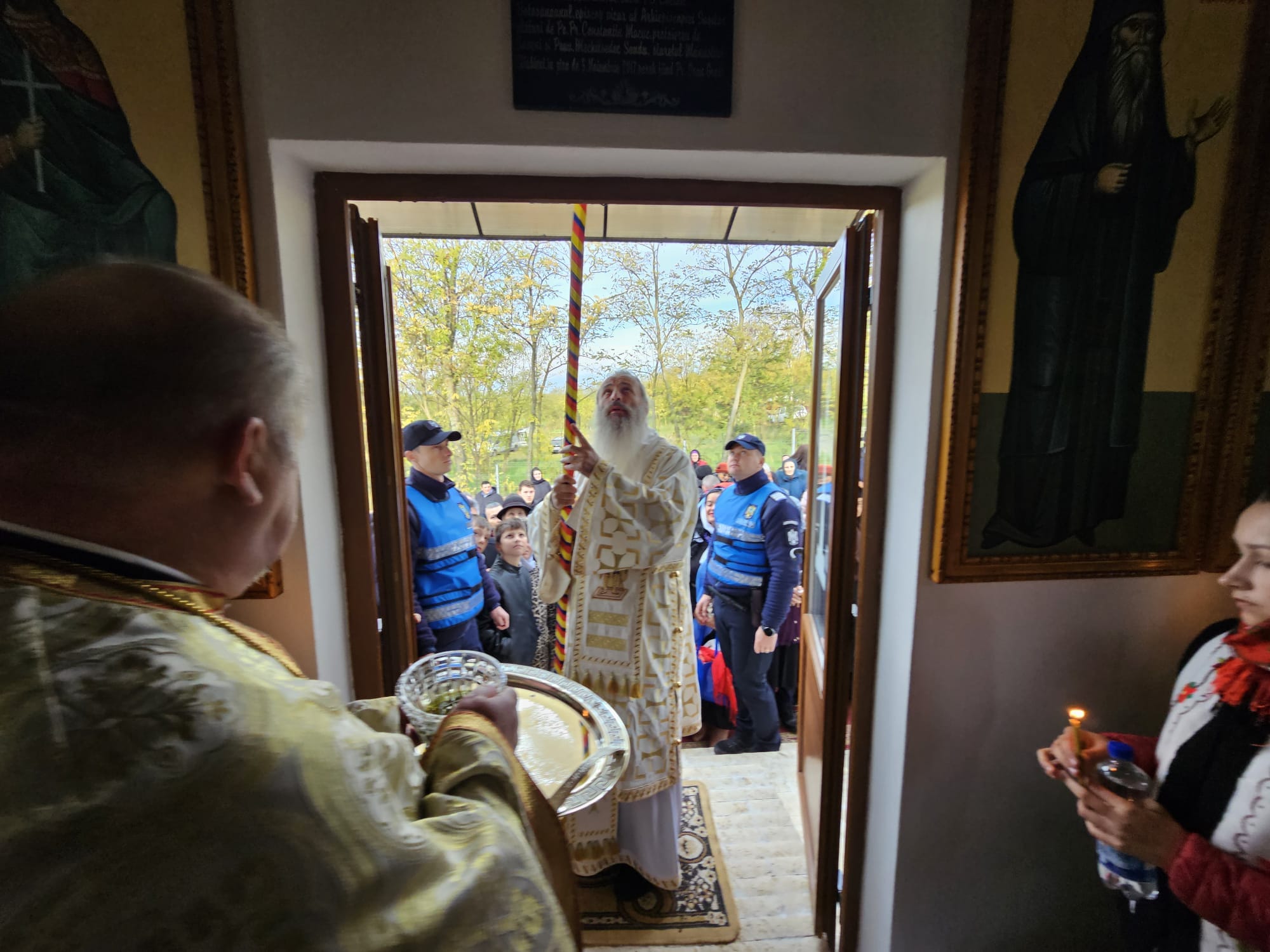Oamenii au ascultat Sfânta Liturghie, iar după sfințirea lăcașului de cult au așteptat la rând pentru a trece prin Sfântul Altar cu toată familia.