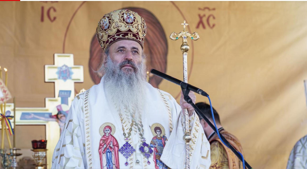 Sfânta Liturghie a fost oficiată de Mitropolitul Moldovei și Bucovinei pe un podium special amenajat în vecinătatea bisericii.
