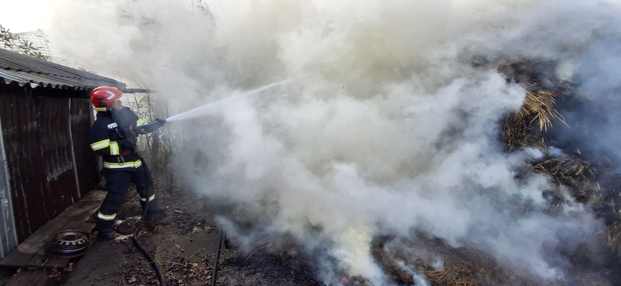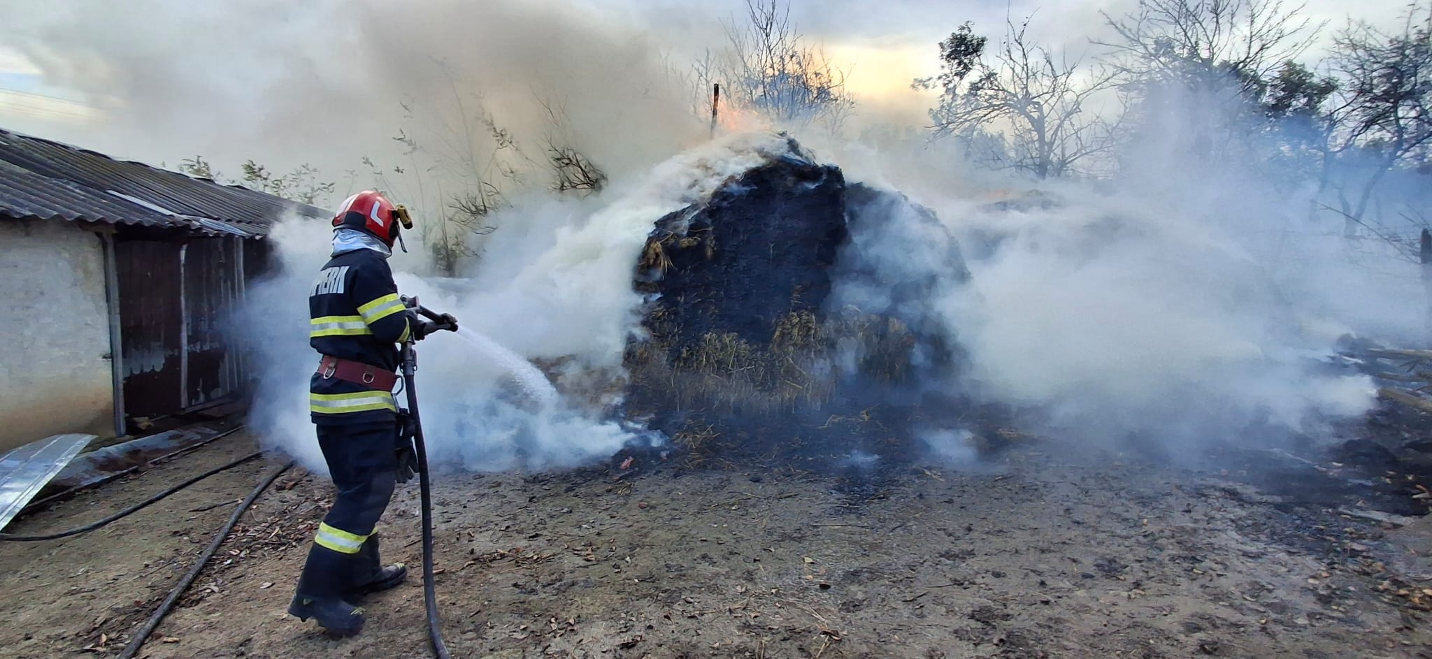 Aceștia au acționat rapid astfel încât flăcările să nu se extindă la un adăpost de animale și un magazin. Incendiul a fost stins. Se intervine, în continuare, pentru înlăturarea efectelor. Au ars aproximativ 15 tone de furaje. S-au salvat adăpostul de animale și un magazin.