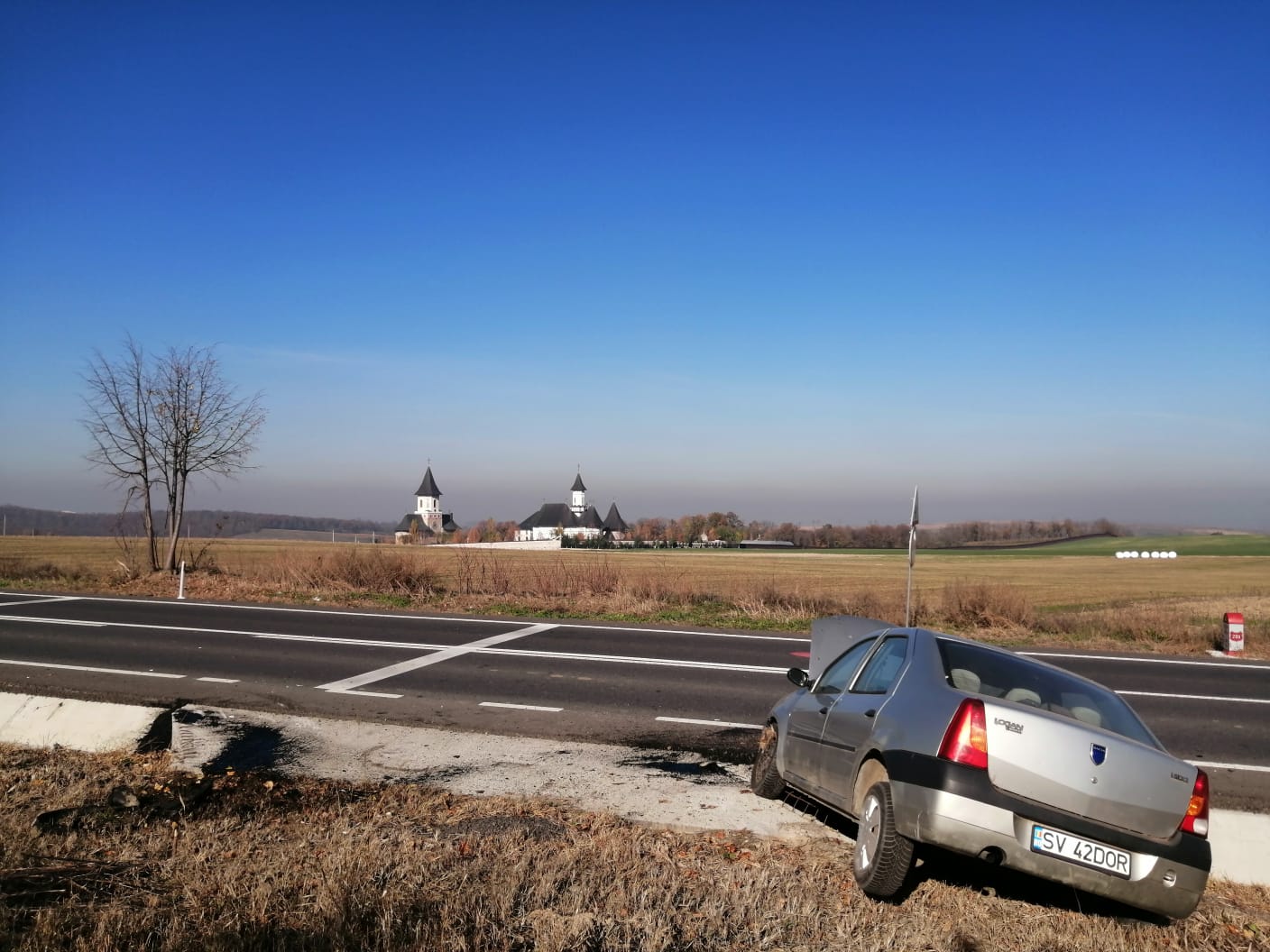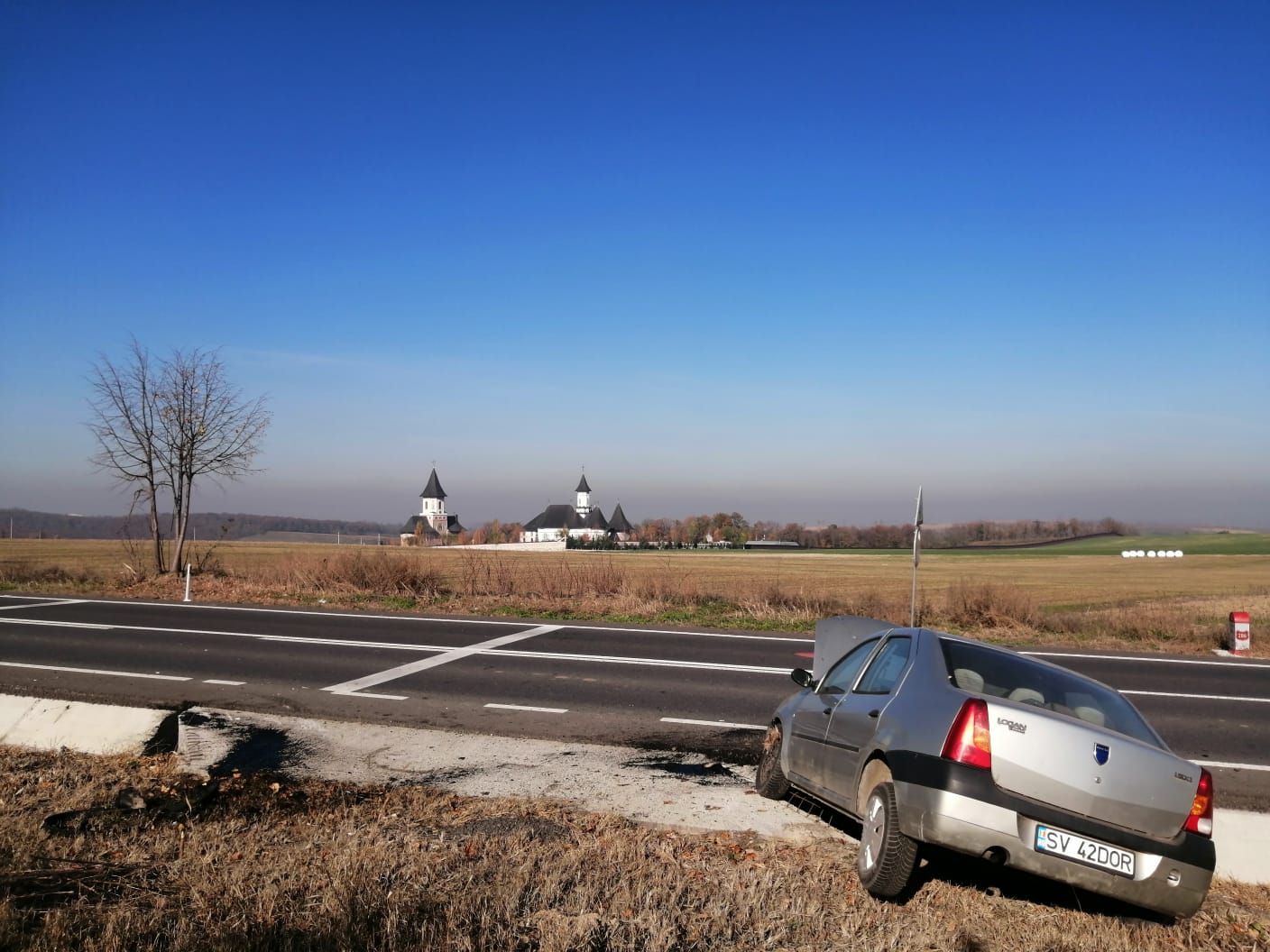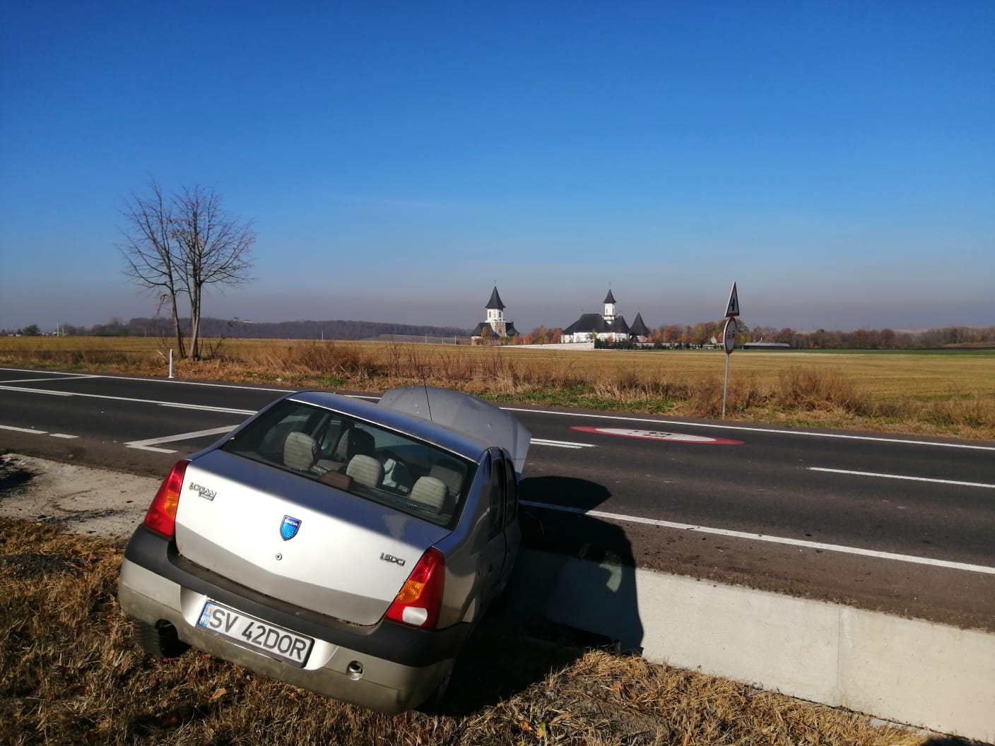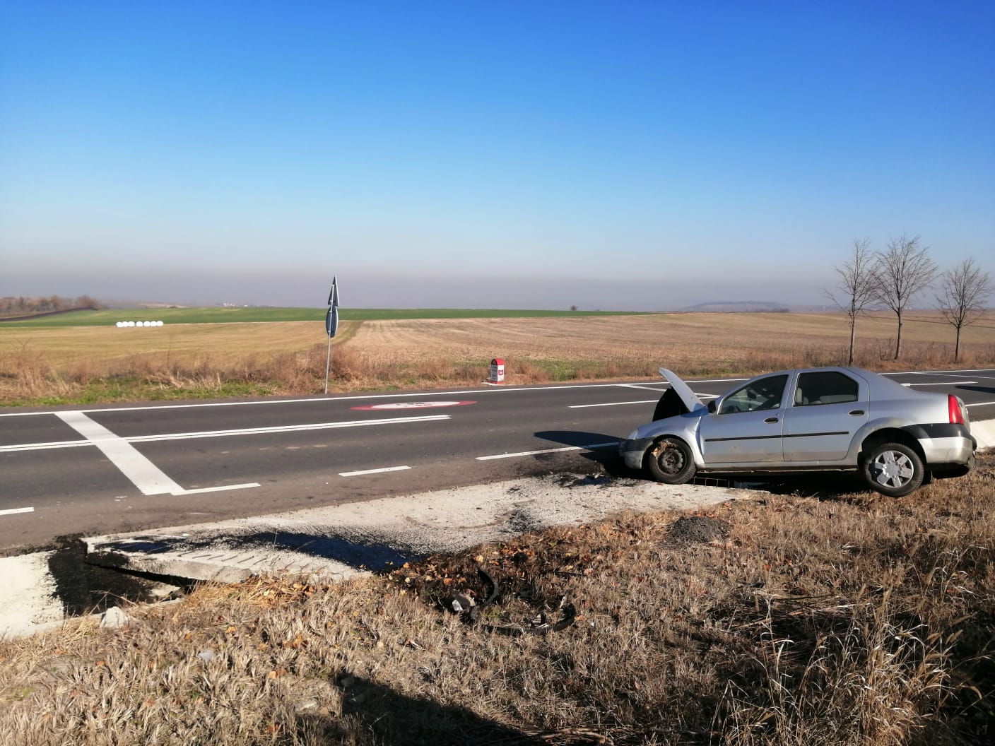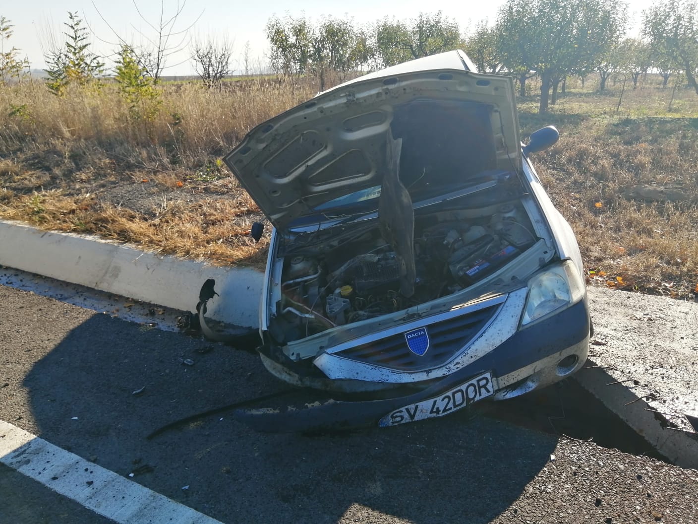 Accident rutier produs, joi la prânz, la Botoşani. Un şofer a intrat cu maşina într-un cap de pod de pe drumul european E58, în dreptul Mănăstirii Zosin.