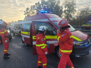 Ambulanța SMURD cu medic transportă la spital încă o victimă, bărbat în vârstă de 46 ani. În urma evaluării de la fața locului, ar fi suferit un traumatism cranio-cerebral și un traumatism toracic, fiind necesare investigații și îngrijiri suplimentare.