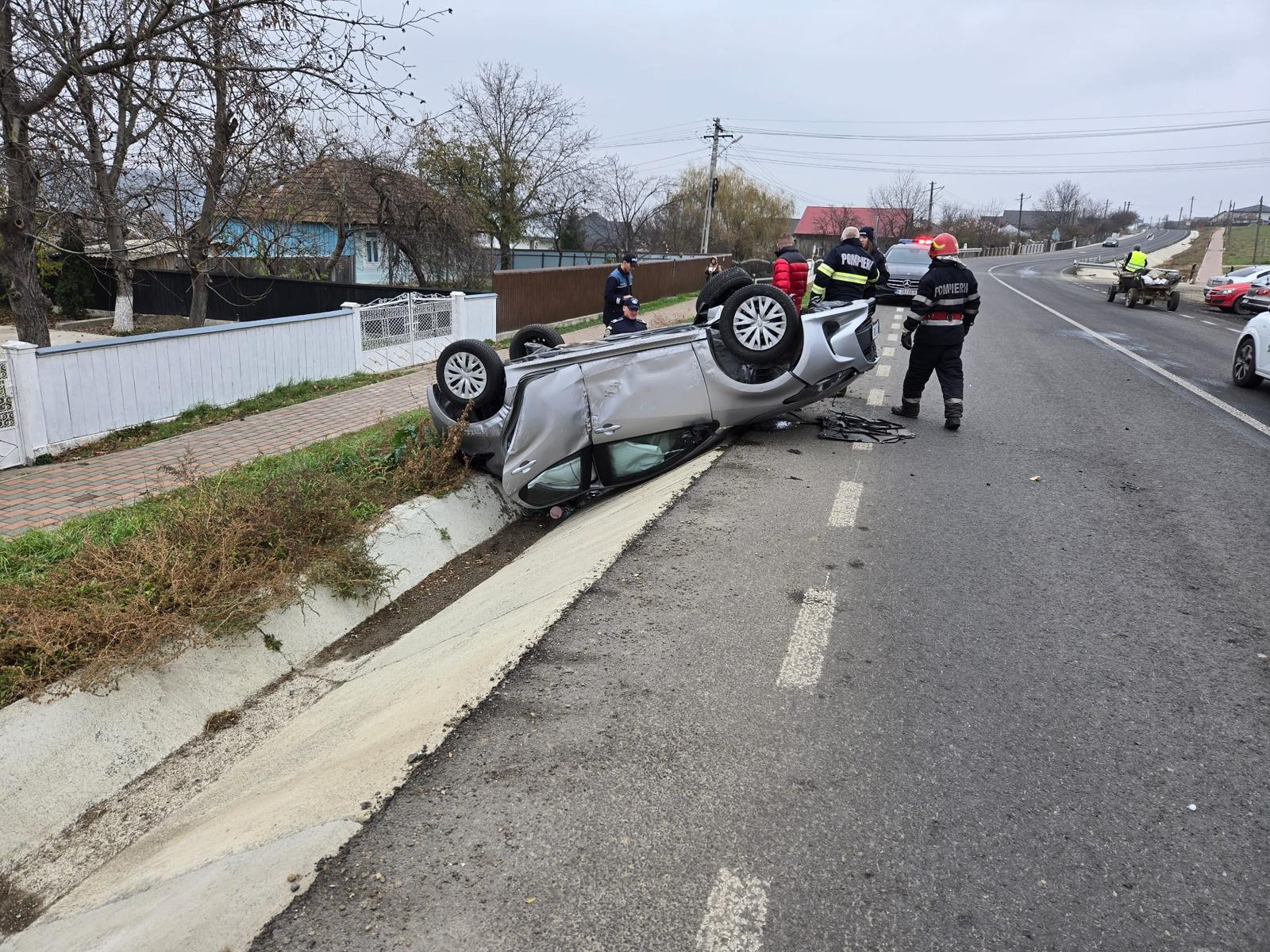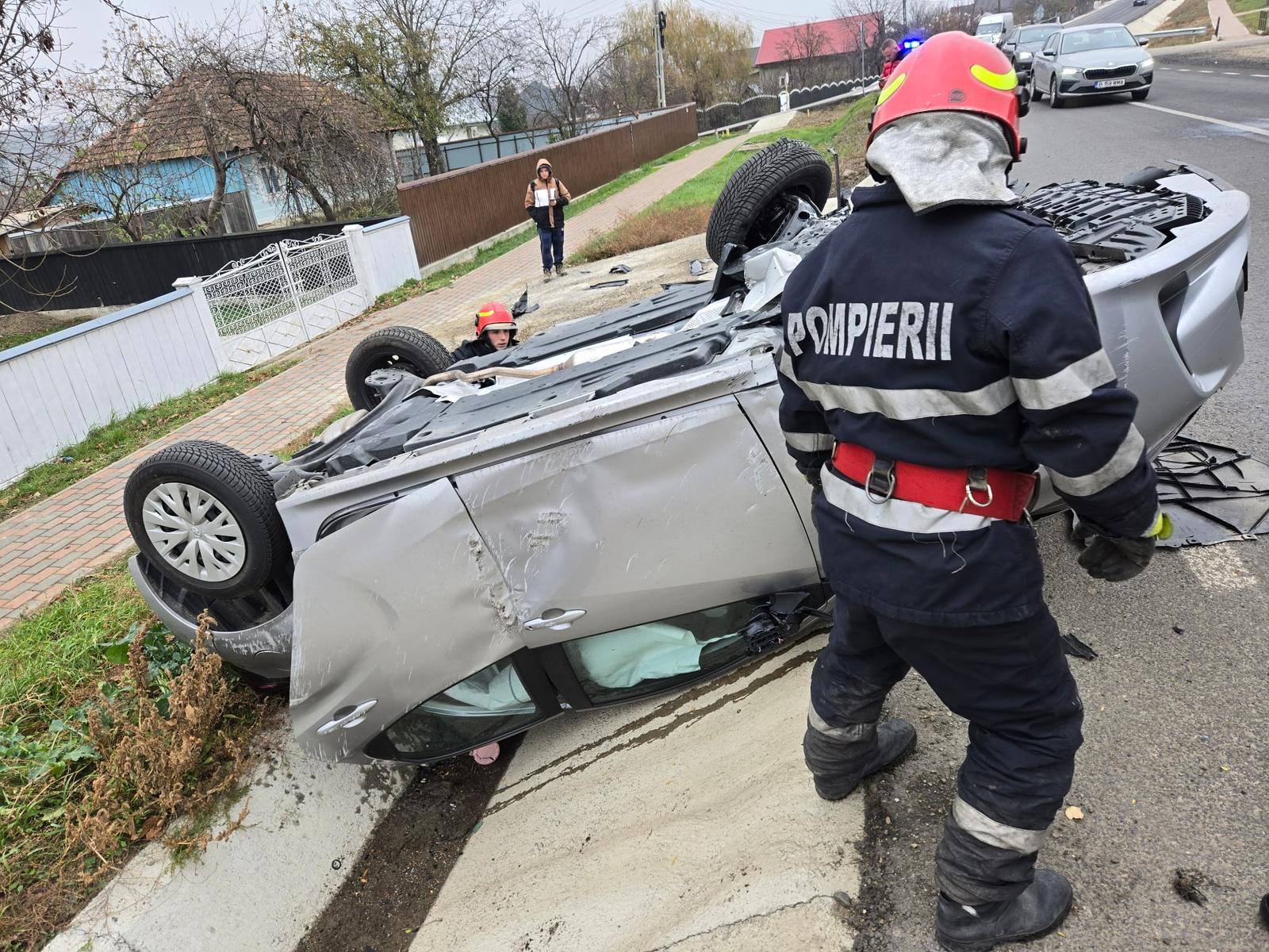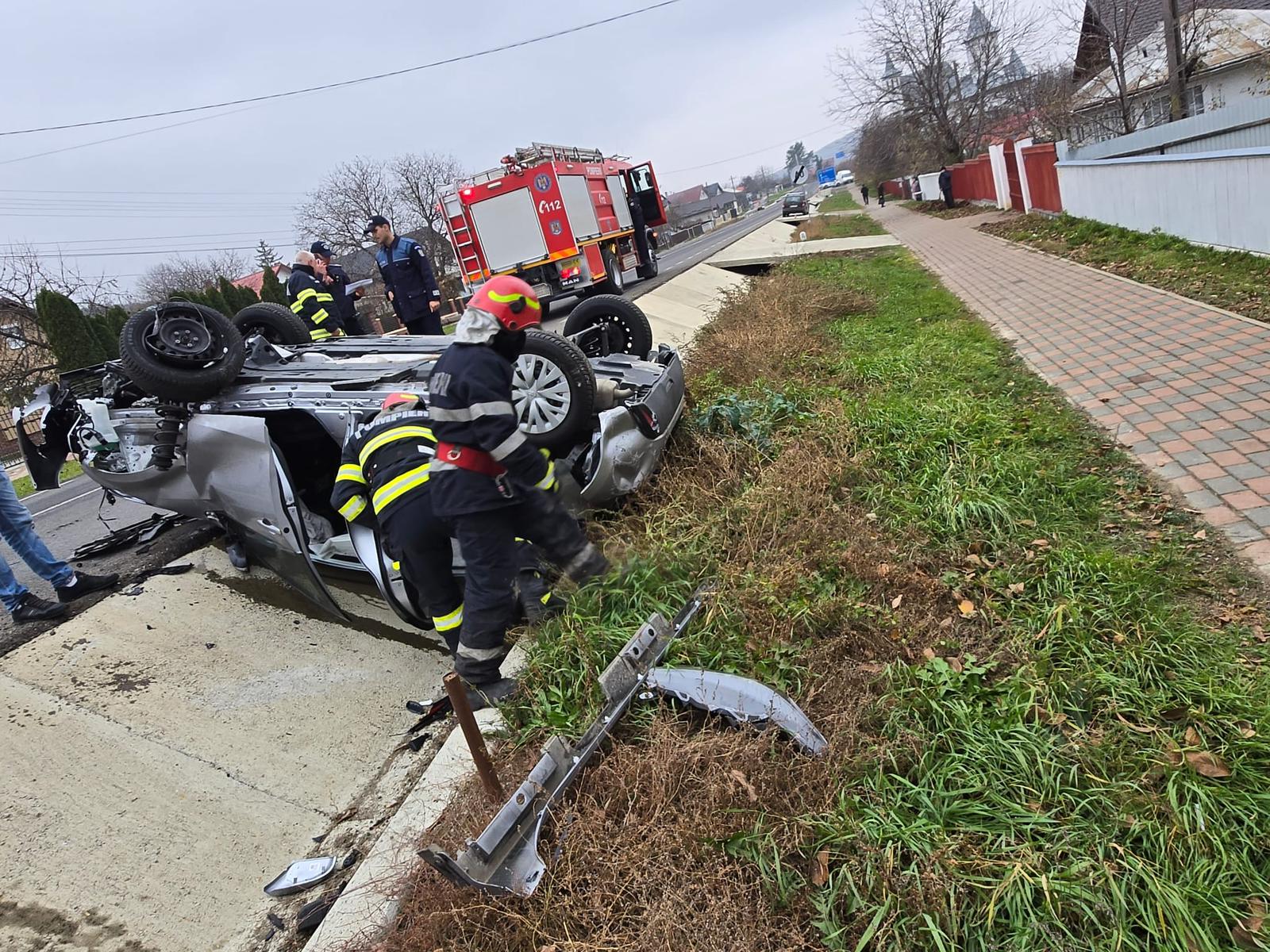 Când salvatorii au ajuns la locul evenimentului, au constatat că șoferița era în afara autoturismului, fiind preluată de echipajul medical pentru a fi transportată la Unitatea de Primiri Urgențe pentru îngrijiri medicale de specialitate.