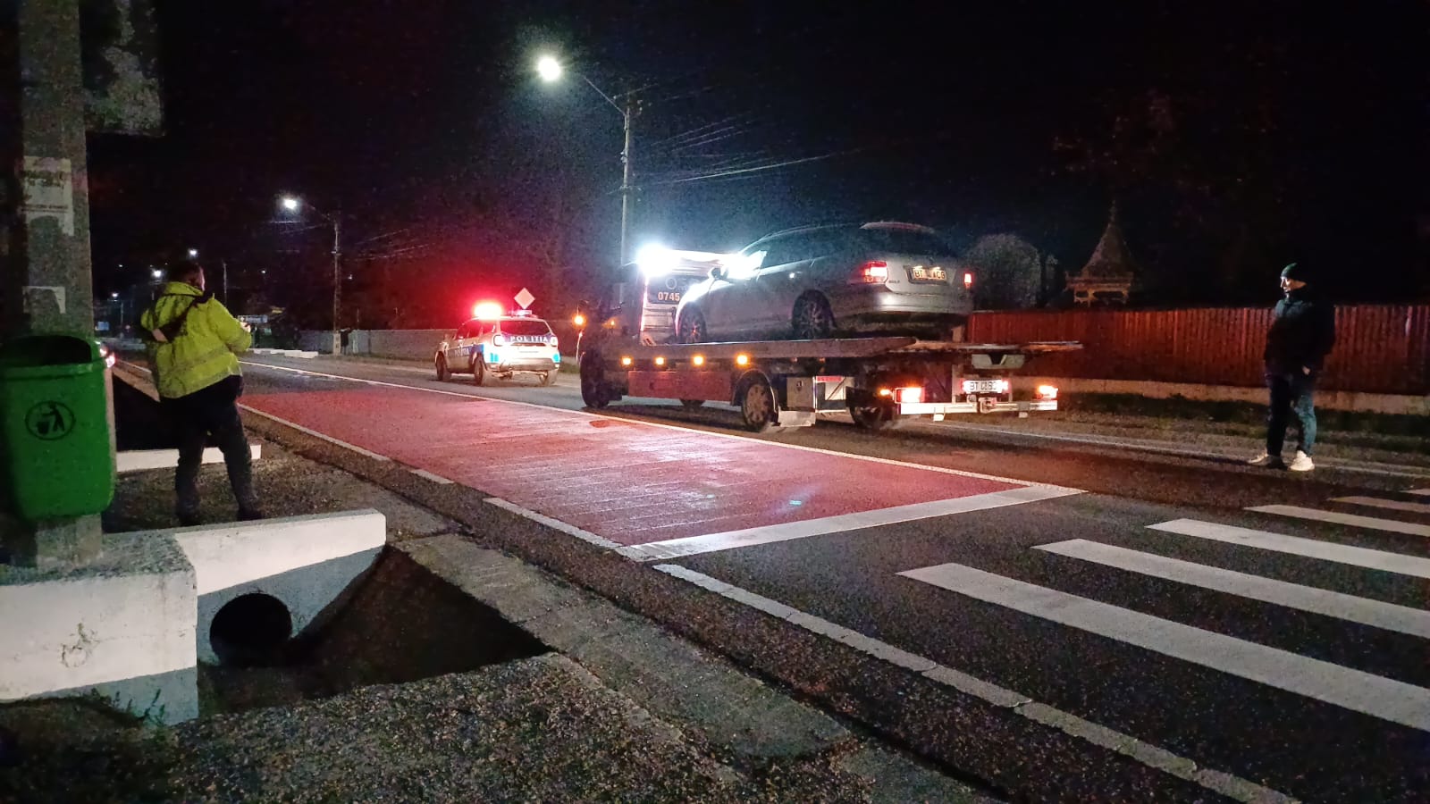 Mașina implicată în accident a fost ridicată de polițiști pentru expertiză.