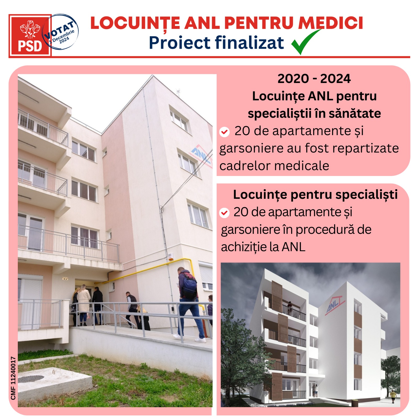 Și pentru că avem nevoie de specialiști, împreună cu echipa managerială, am obținut autorizarea Spitalului Județean pentru a derula programe de rezidențiat în 24 de specializări, iar pentru specialiști, am construit primul bloc de locuințe, în timp ce al doilea este în procedură de licitație”, a precizat Doina Federovici.