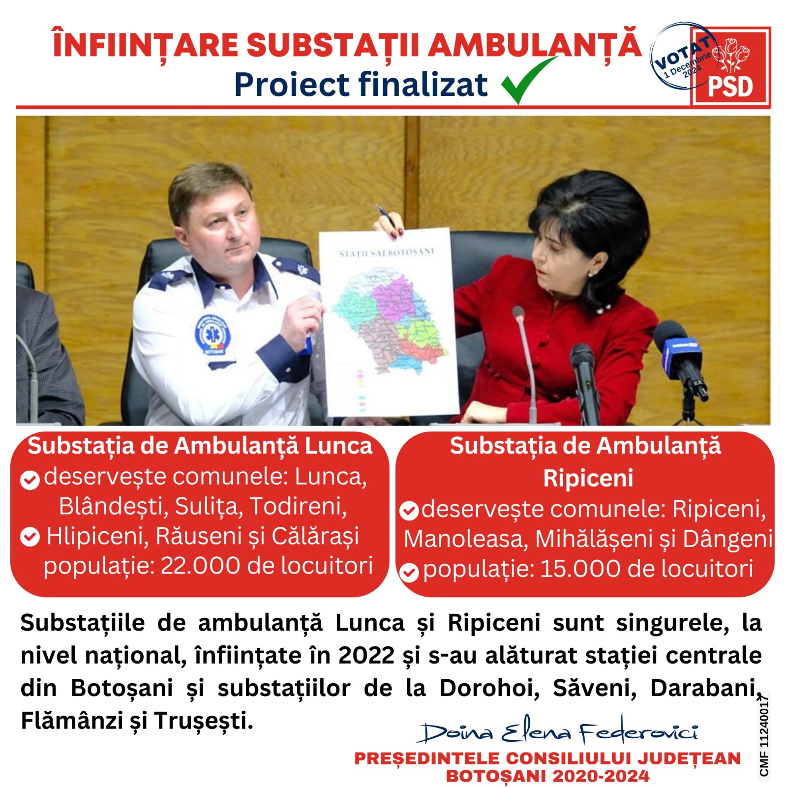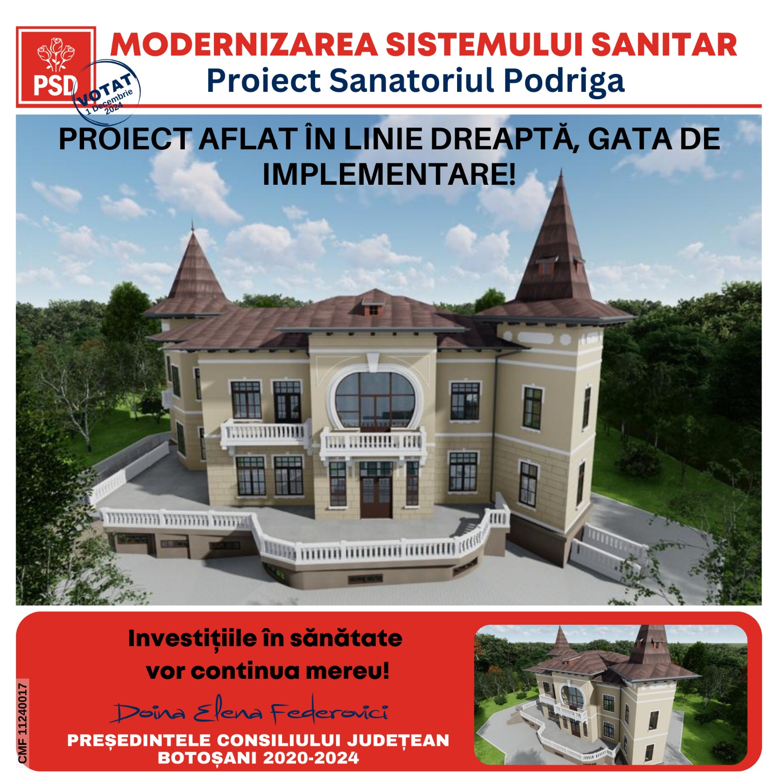 Botoșănenii au nevoie de spitale noi și moderne. Chiar dacă guvernarea PNL-USR din perioada 2020-2021 ne-a refuzat șansa de a putea depune cerere de finanțare pe PNRR pentru construirea unor spitale noi, am obținut acum de la Ministerul Sănătății avizul de oportunitate pentru construirea Spitalului de Pediatrie și a Spitalului Săveni. Am lăsat pe masa președintelui Valeriu Iftime proiectele mature pentru cele două spitale, care trebuie depuse până la finalul lunii pentru a obține finanțarea europeană! Sper din suflet să nu se joace cu sănătatea botoșănenilor și să nu dea cu piciorul în șansa uriașă pentru modernizarea sistemului sanitar botoșănean”, a mai declarat Doina Federovici.