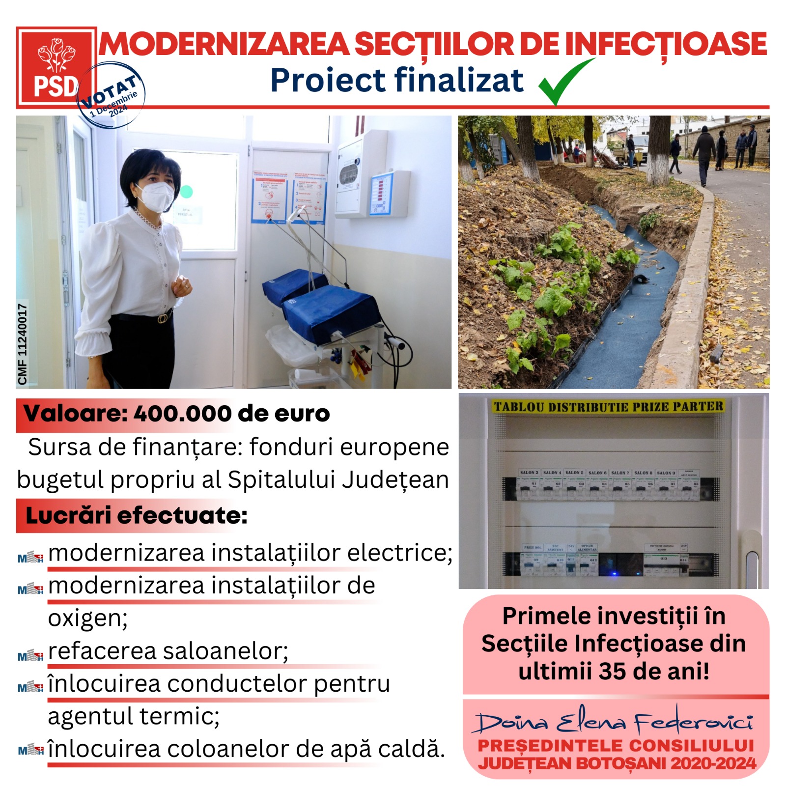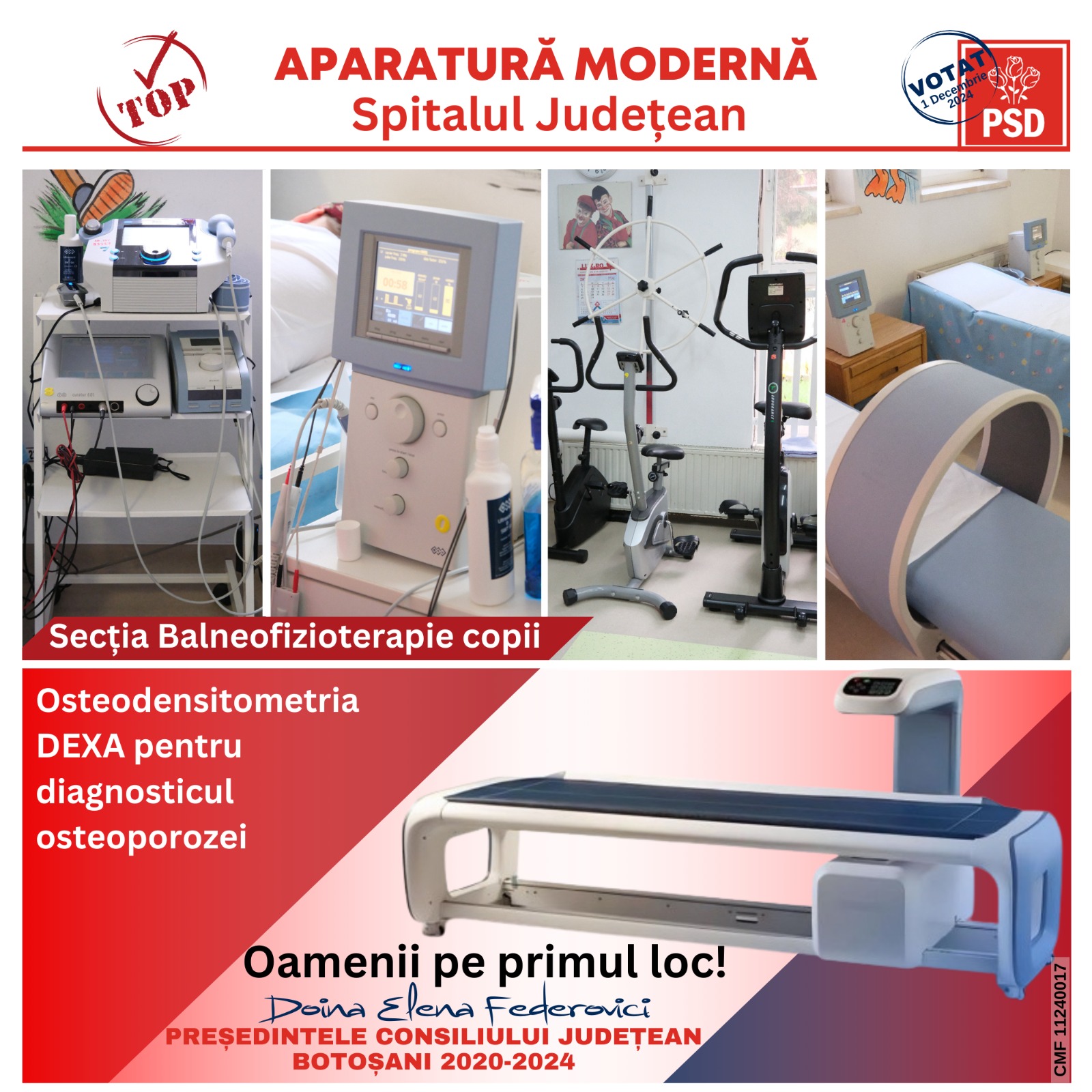 Federovici, președintele PSD Botoșani a adăugat că din fonduri europene, guvernamentale sau din bugetul județean s-a achiziționat aparatură de ultimă generație pentru toate secțiile: