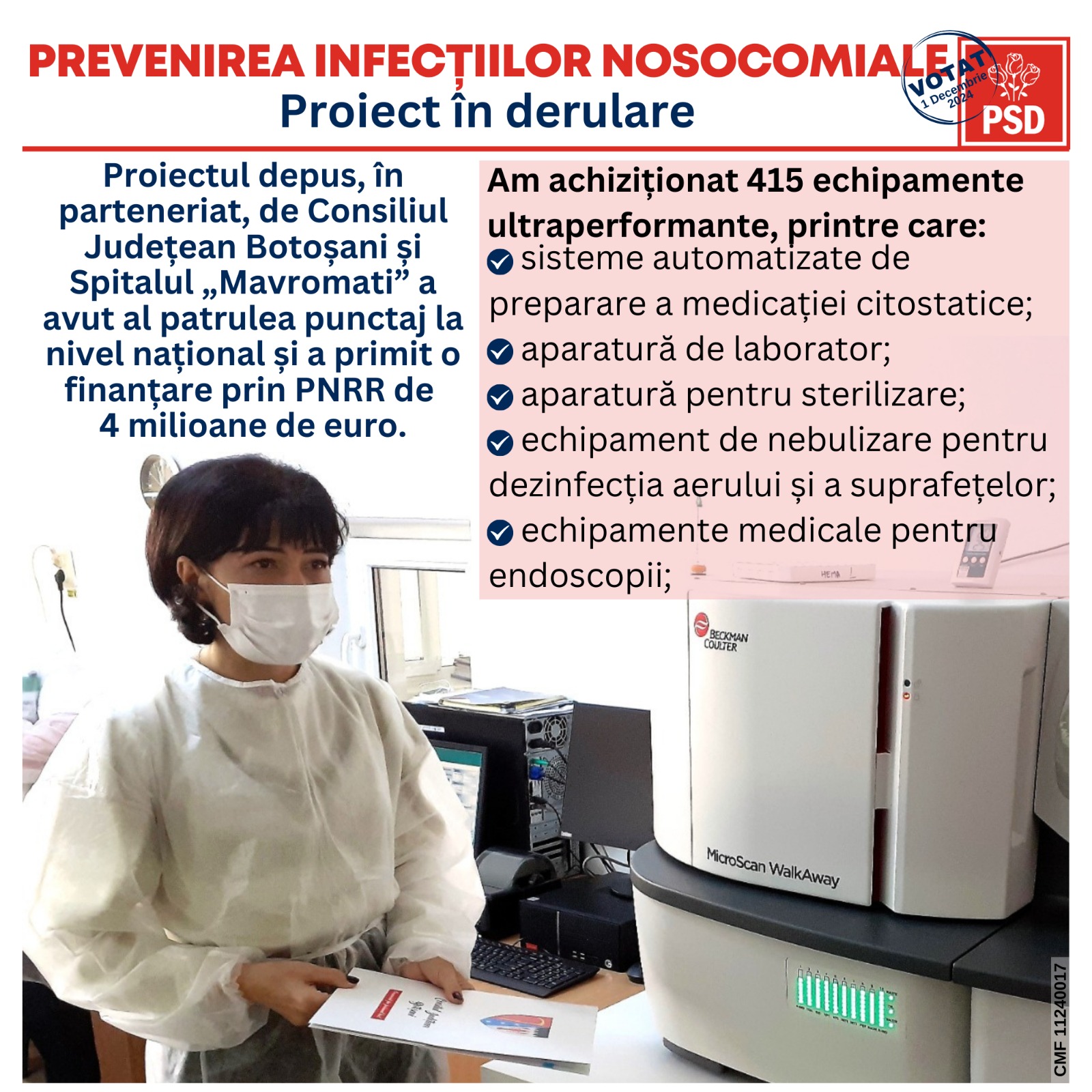• Achiziționarea a 415 echipamente ultraperformante pentru prevenirea infecțiilor nosocomiale;
