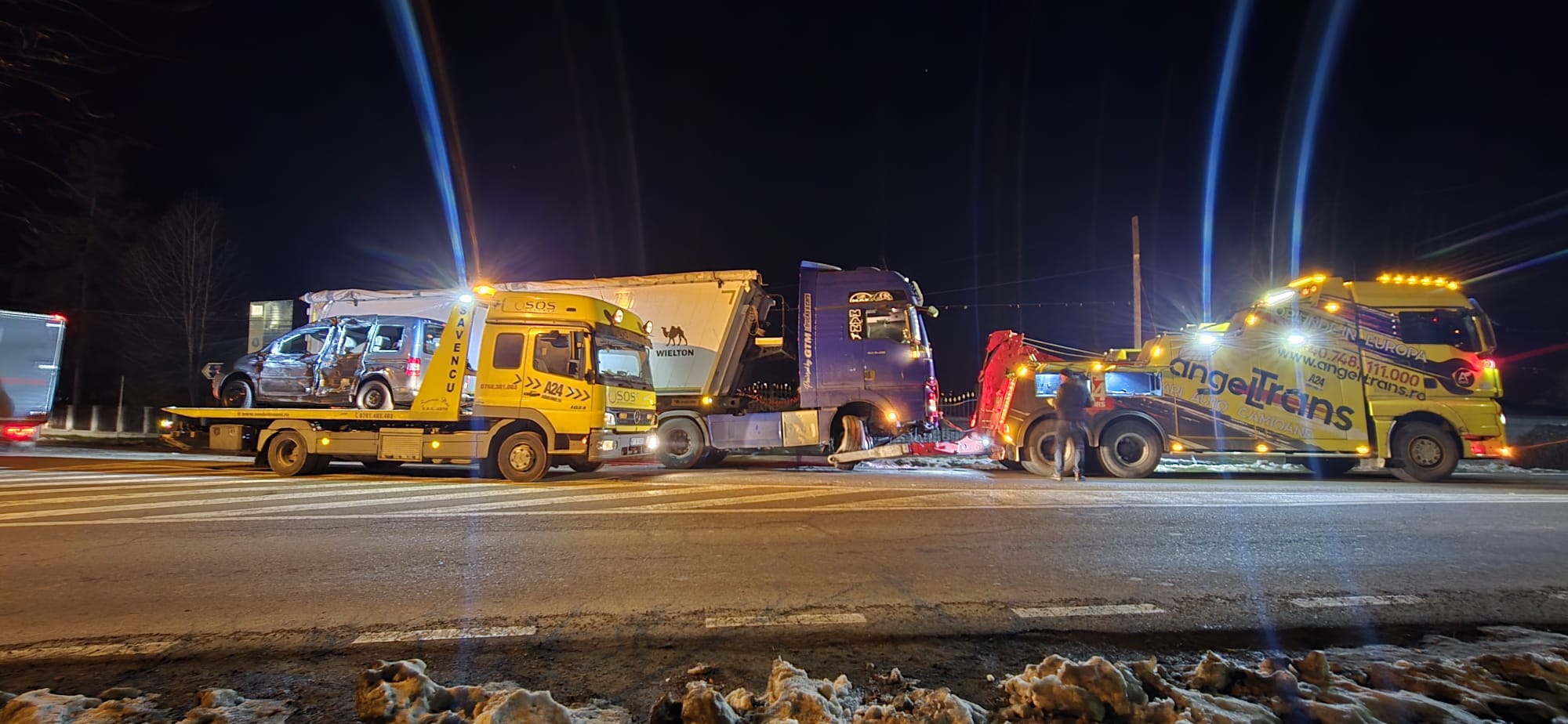 VIDEO & FOTO Accident într-un giratoriu de pe un drum judeţean din Botoşani. Un camion a intrat pe contrasens