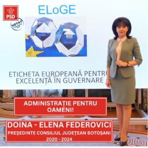 „Echipa PSD a pus pe primul plan dezvoltarea județului și promovarea acestuia la nivel european. Ceea ce am făcut în ultimii patru ani a fost doar începutul unui drum care trebuie să continue și de aceea îi rog pe botoșăneni să aibă încredere în echipa de parlamentari PSD și să-i voteze pe 1 decembrie. Faptul că am pus județul pe drumul bun, pe calea dezvoltării, nu o spunem noi, ci reprezentanții celor mai importante foruri europene. Consiliul Europei ne-a acordat prima etichetă EloGE din România, adică Eticheta Europeană pentru Excelență în Guvernare, iar în cadrul Săptămânii Europene a Regiunilor de la Bruxelles, echipa pe care o conduc a fost invitată, în ultimii doi ani, să prezinte exemple de bune practici în ceea ce privește proiectele europene implementate”, a declarat Doina Federovici, președintele PSD Botoșani.