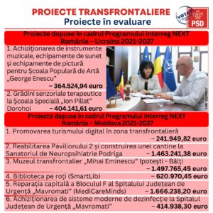 - Muzeul transfrontalier „Mihai Eminescu” Ipotești – Bălți – 1.497.765,45 euro;
