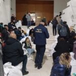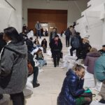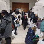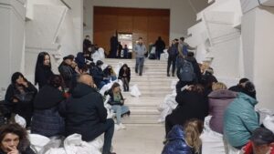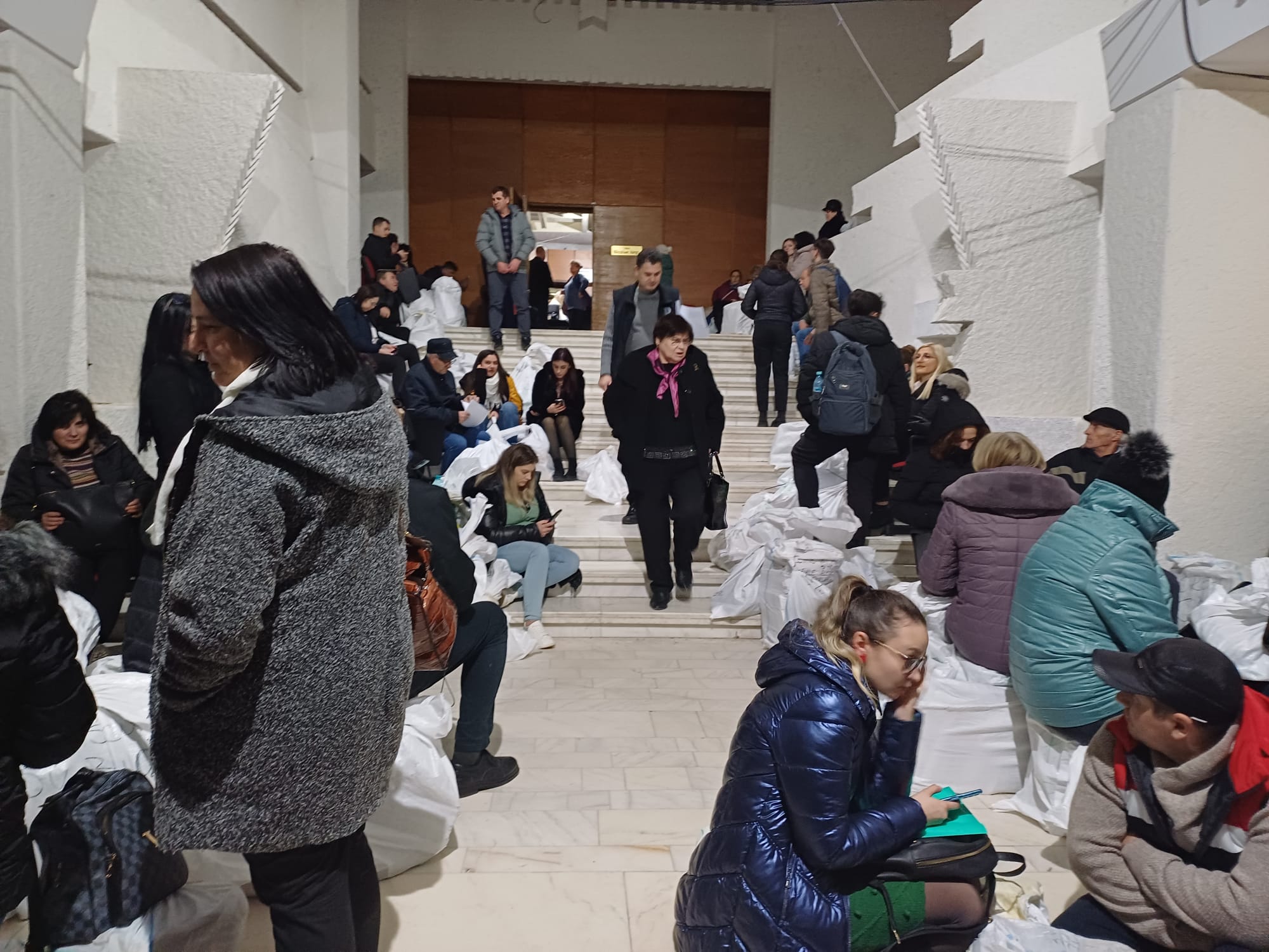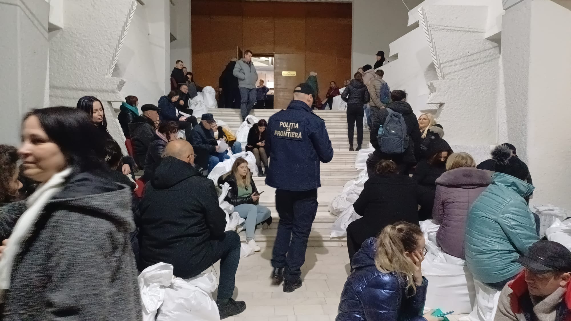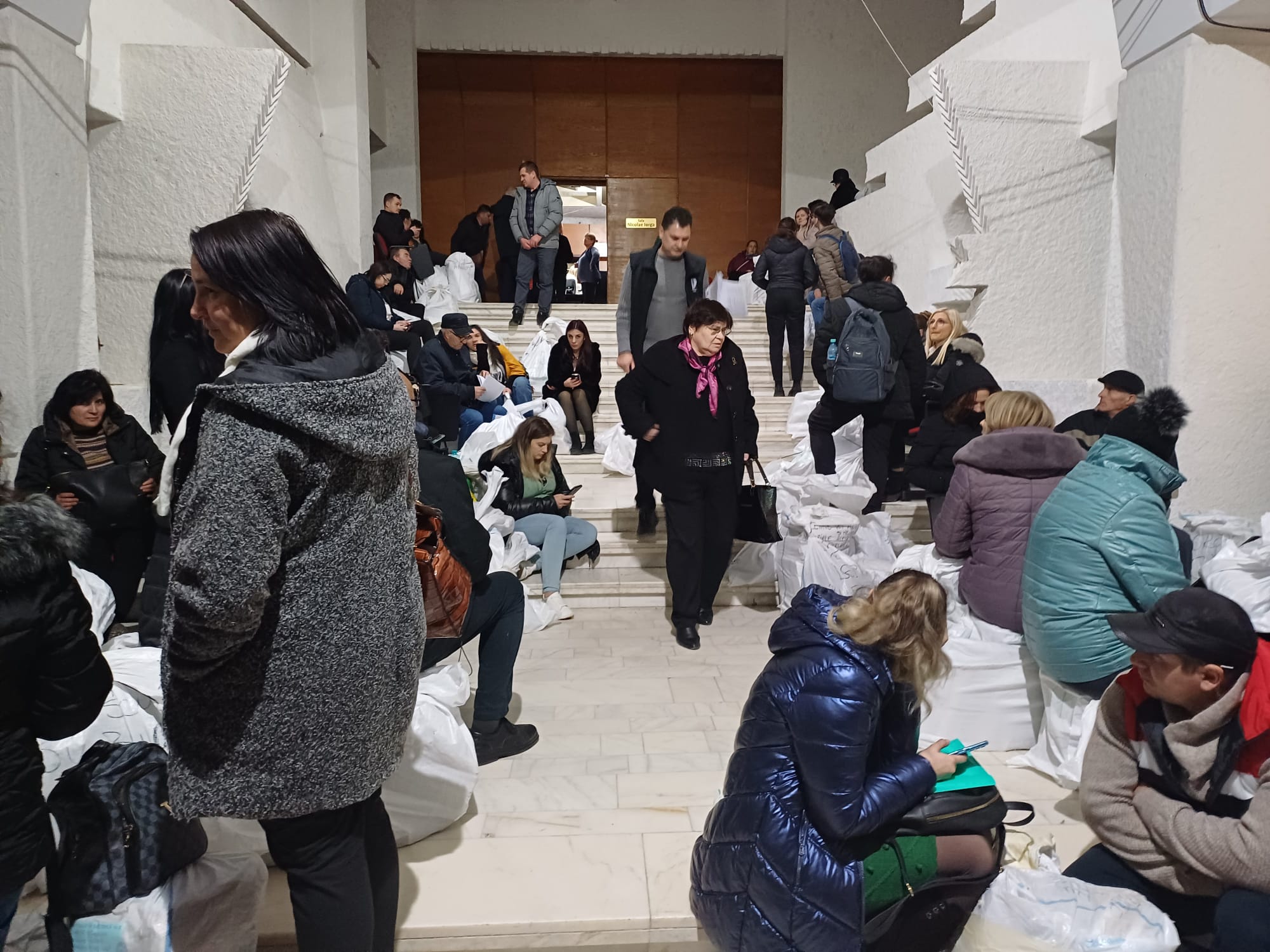 Rupți de oboseală, oamenii s-au așezat inclusiv pe scările instituției așteptând să intre la Biroul Electoral.