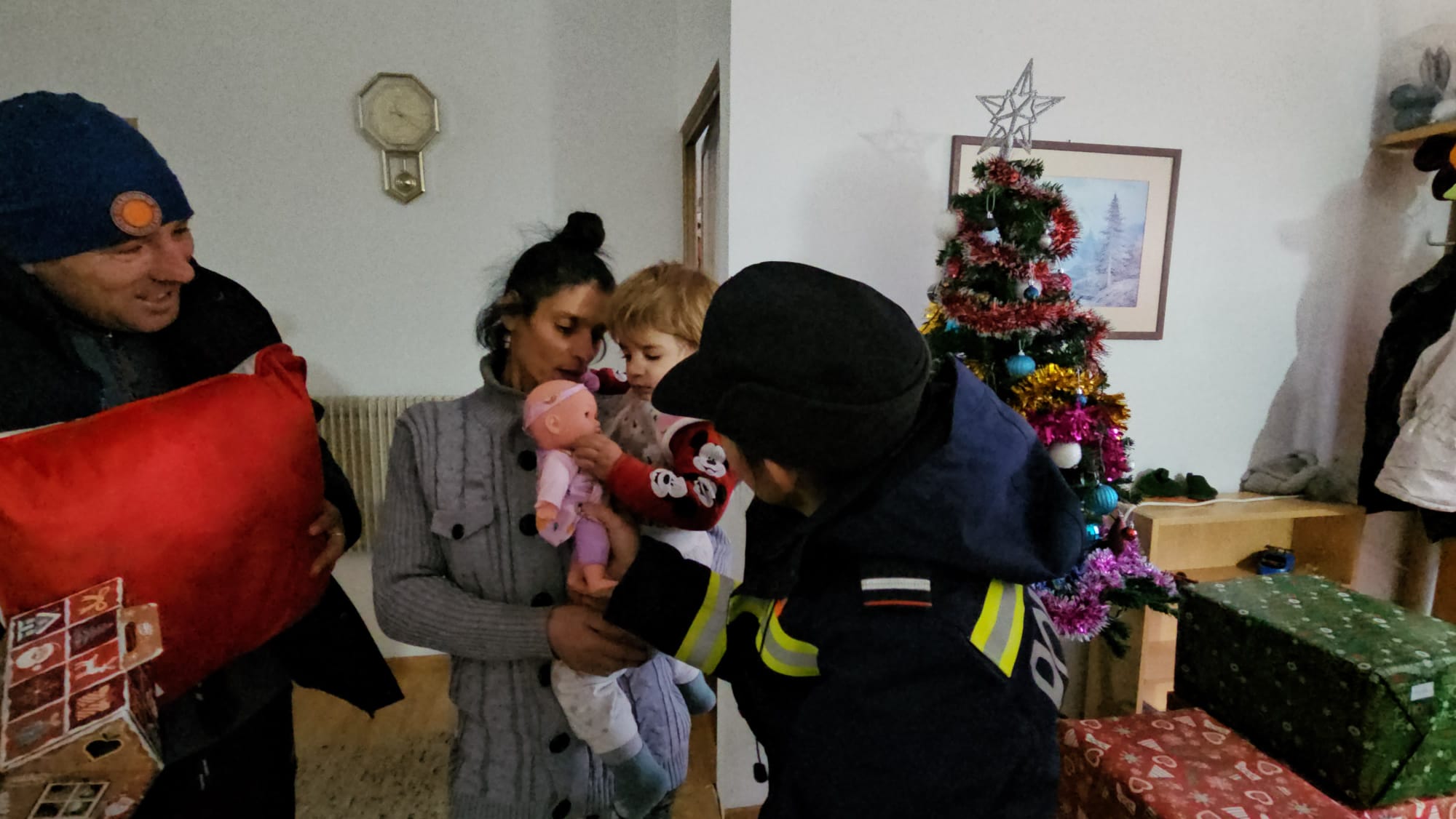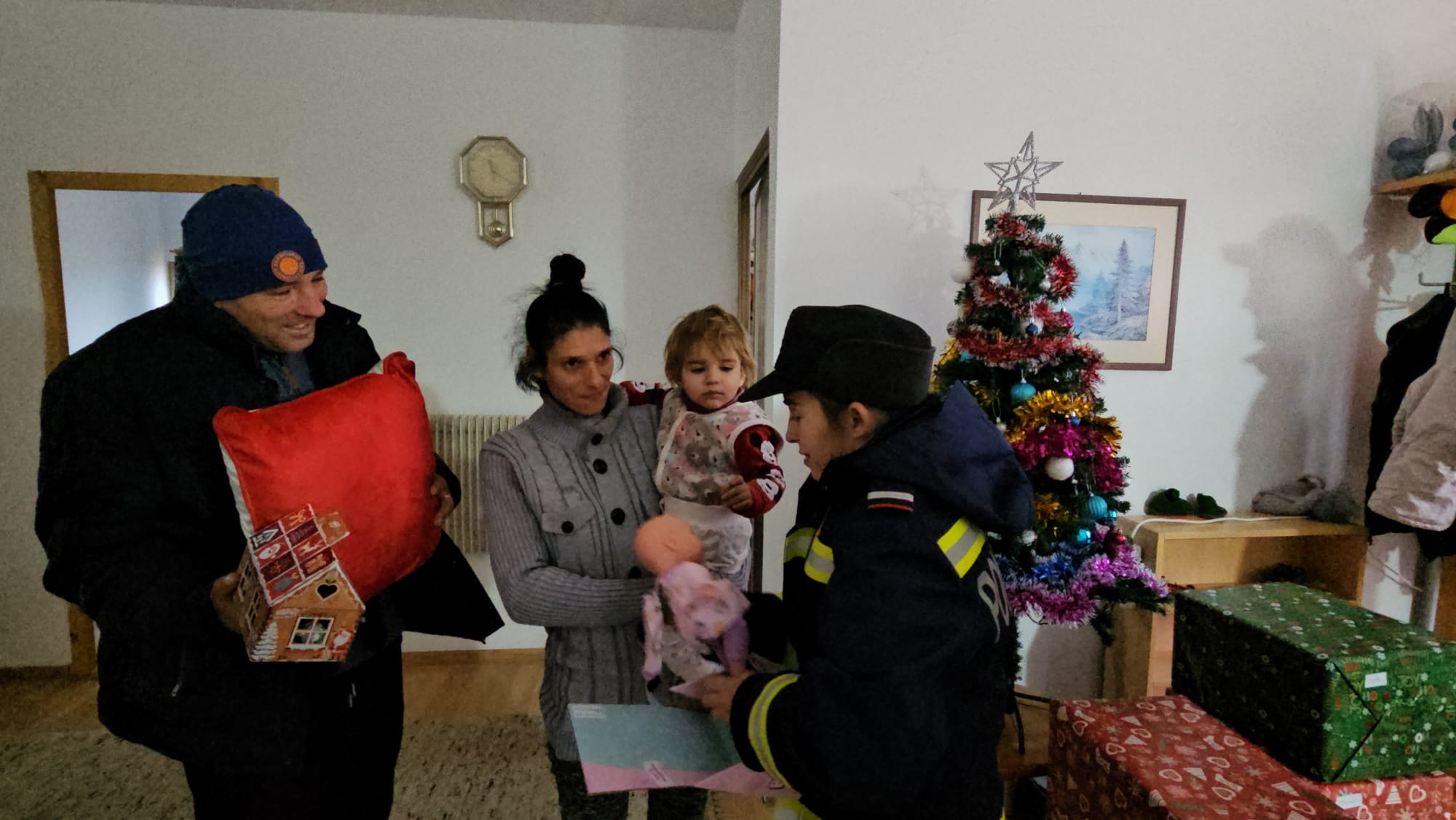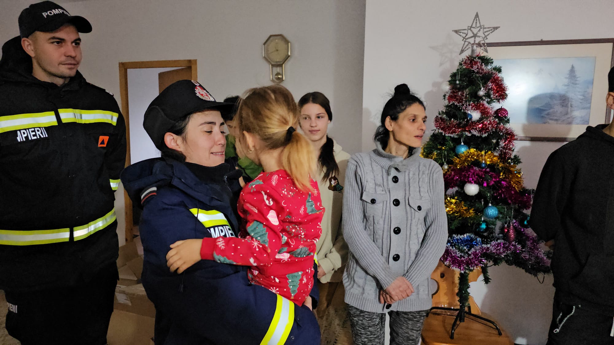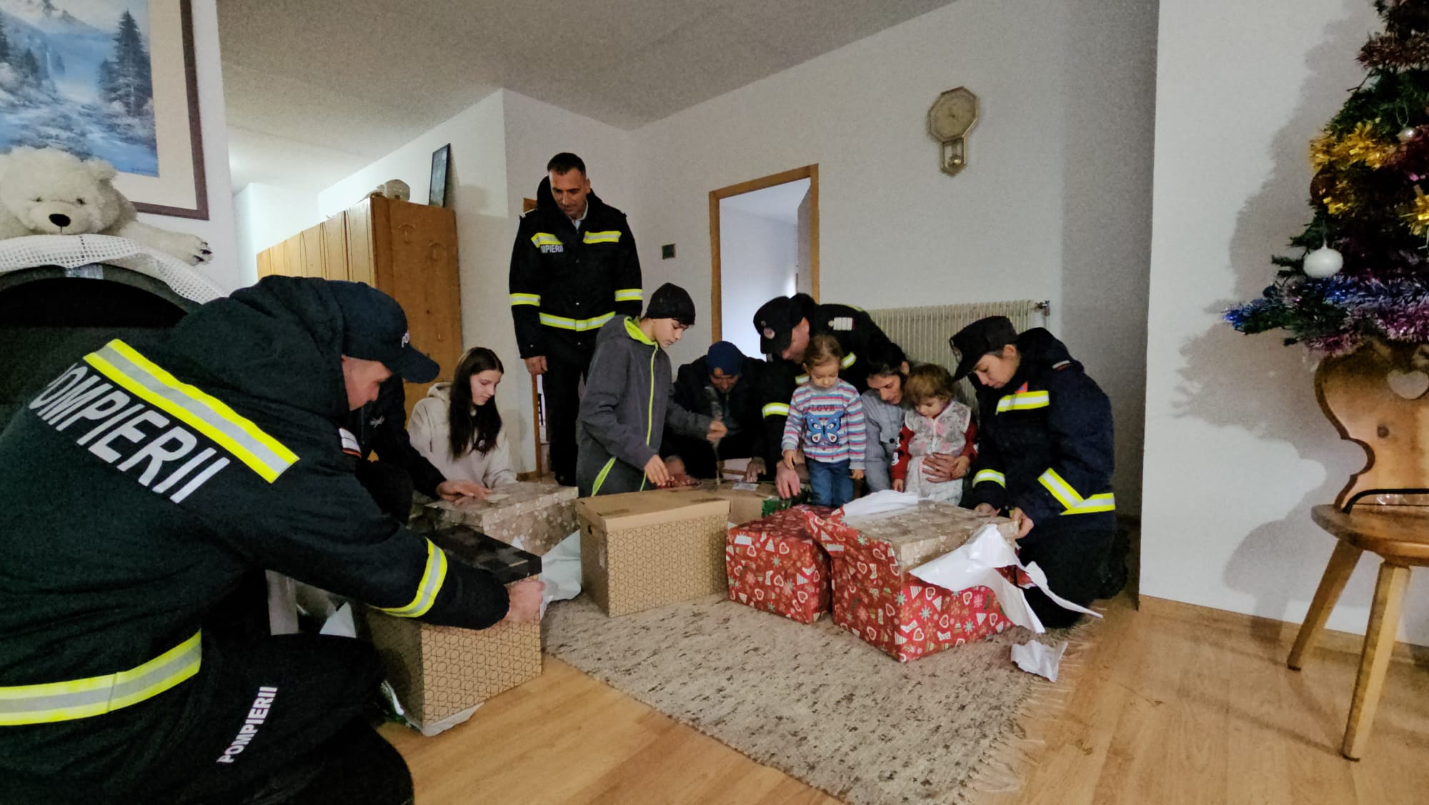 Impresionați de situația dificilă a familiei, care și-a văzut distrus locul plin de amintiri și bucurii, pompierii au venit, de această dată, cu brațele pline de daruri, astfel încât familia să simtă căldura sărbătorilor în ciuda pierderii suferite.