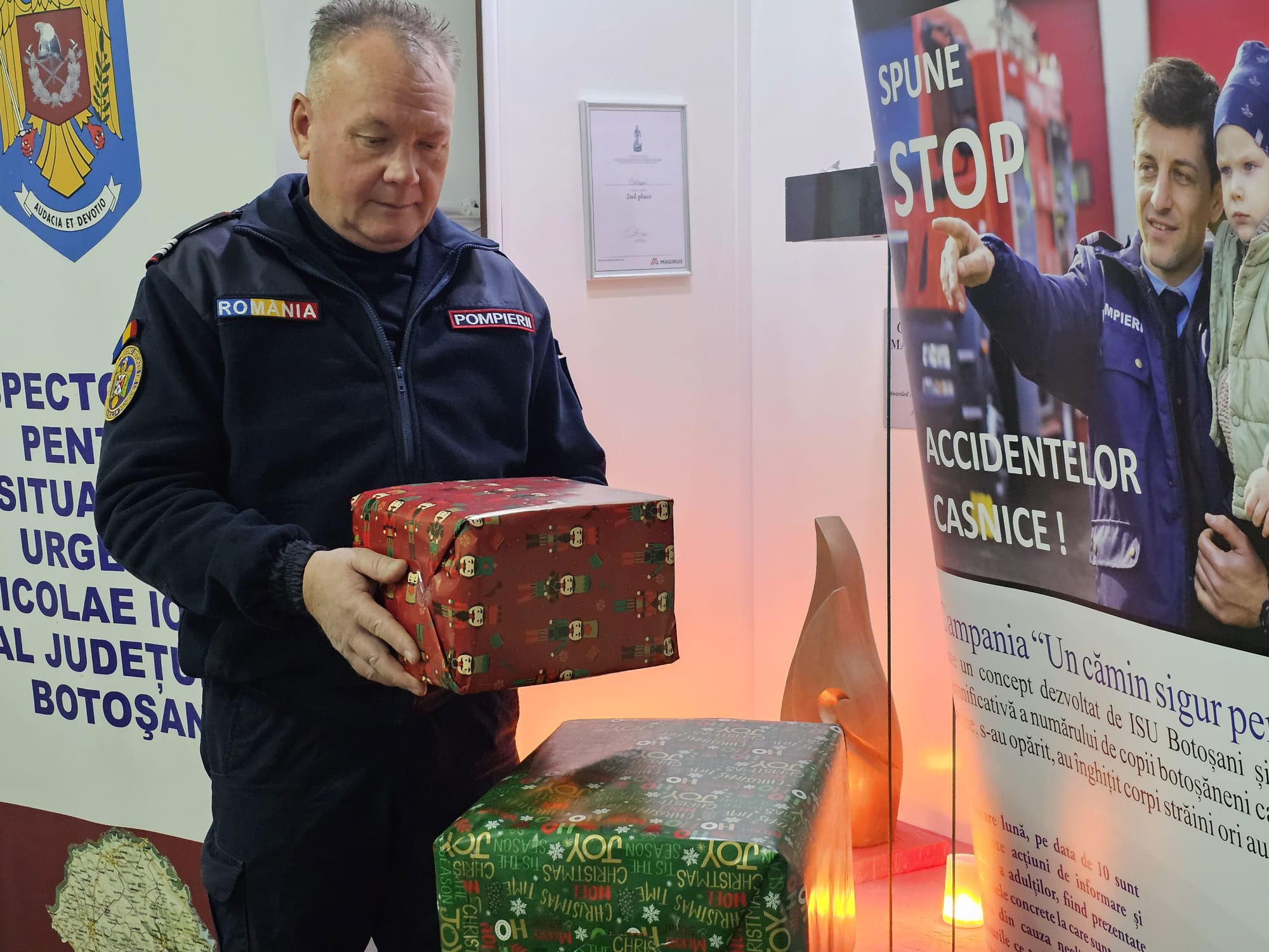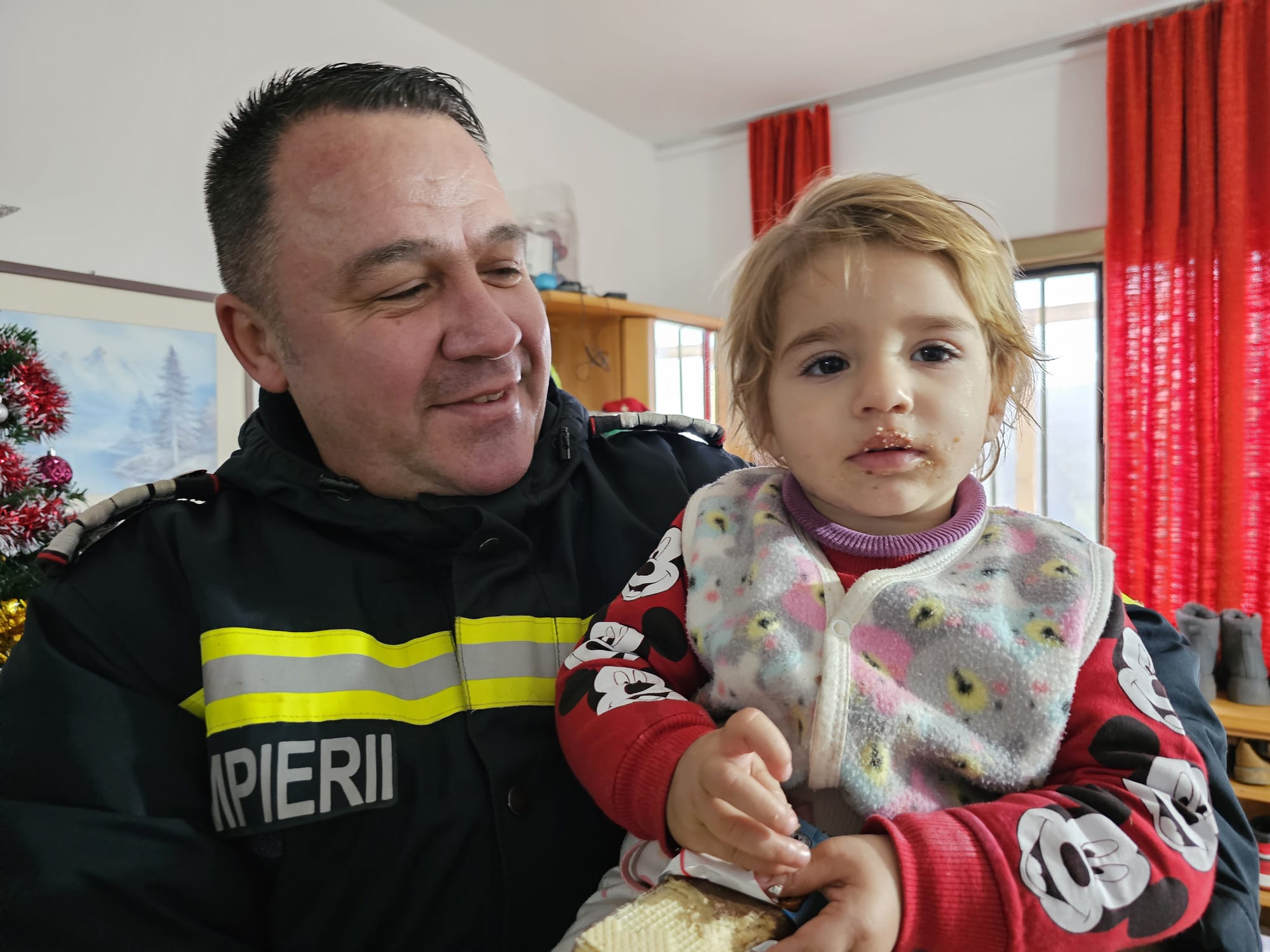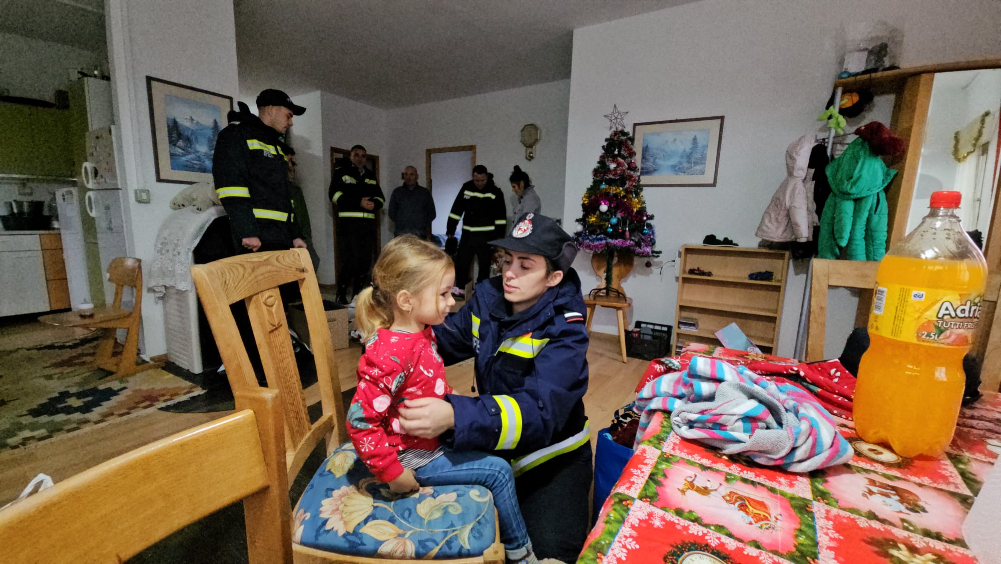 Impresionați de situația dificilă a familiei, care și-a văzut distrus locul plin de amintiri și bucurii, pompierii au venit, de această dată, cu brațele pline de daruri, astfel încât familia să simtă căldura sărbătorilor în ciuda pierderii suferite.