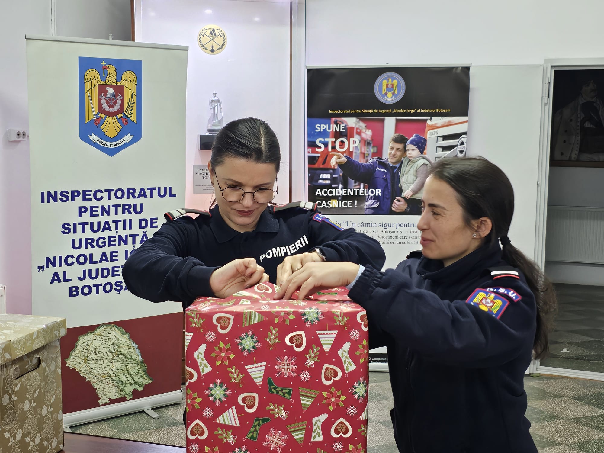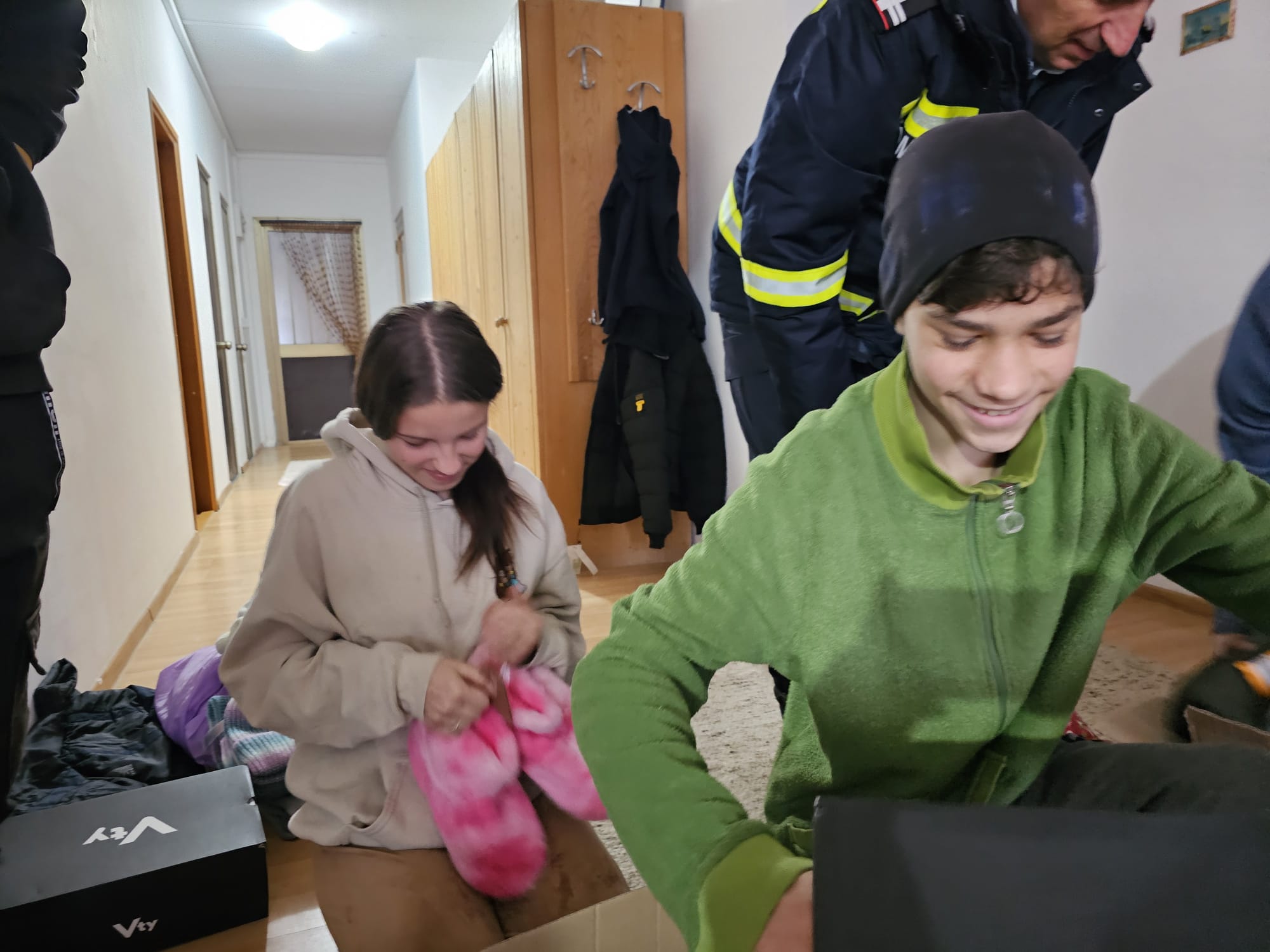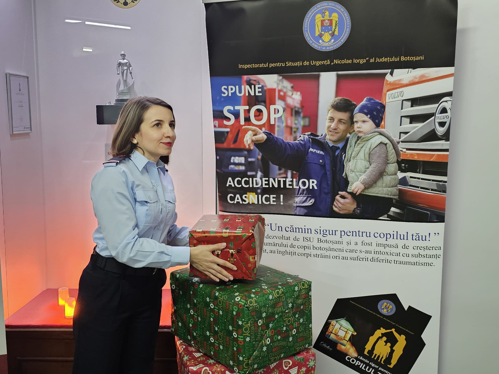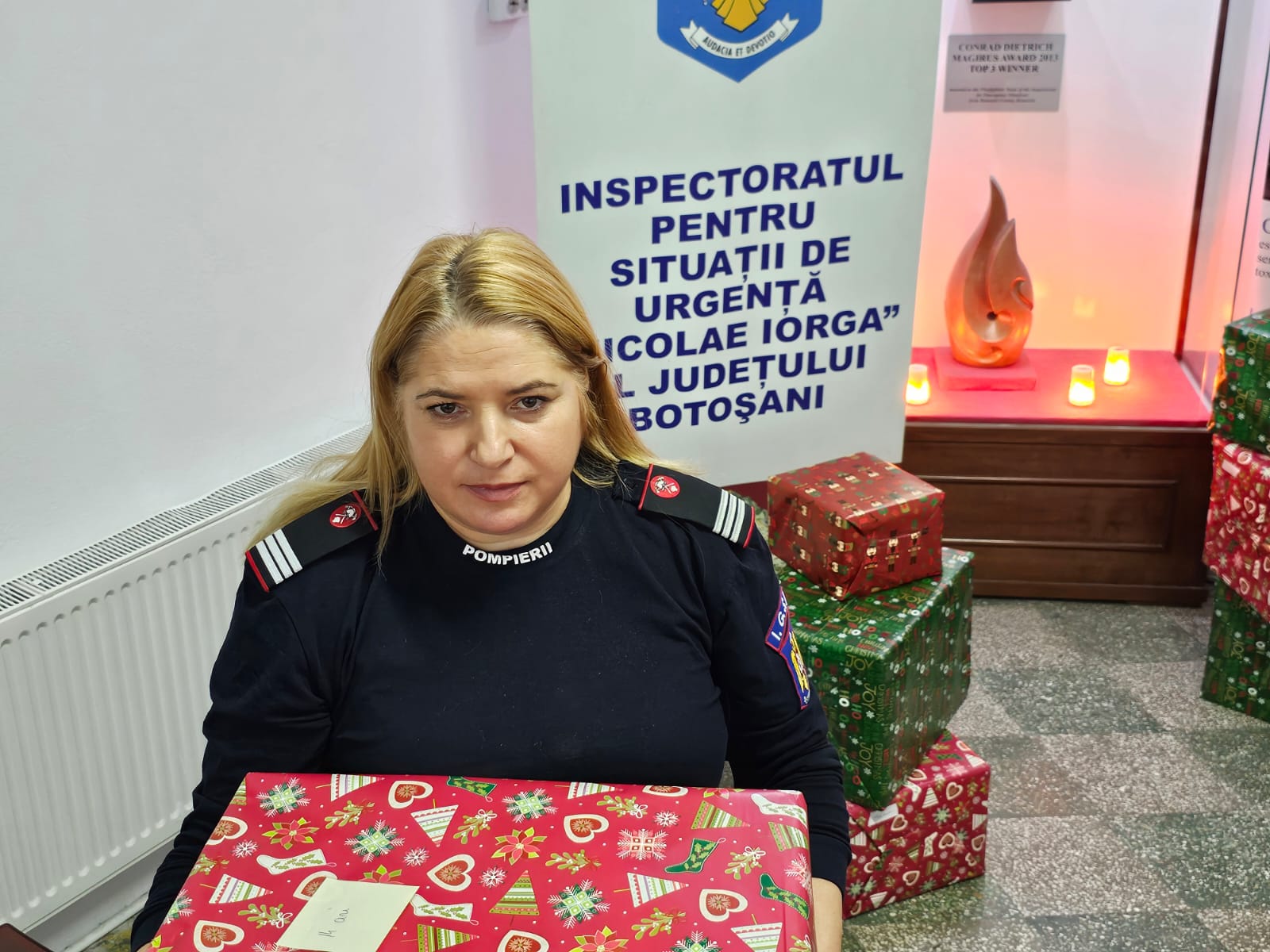 Impresionați de situația dificilă a familiei, care și-a văzut distrus locul plin de amintiri și bucurii, pompierii au venit, de această dată, cu brațele pline de daruri, astfel încât familia să simtă căldura sărbătorilor în ciuda pierderii suferite.