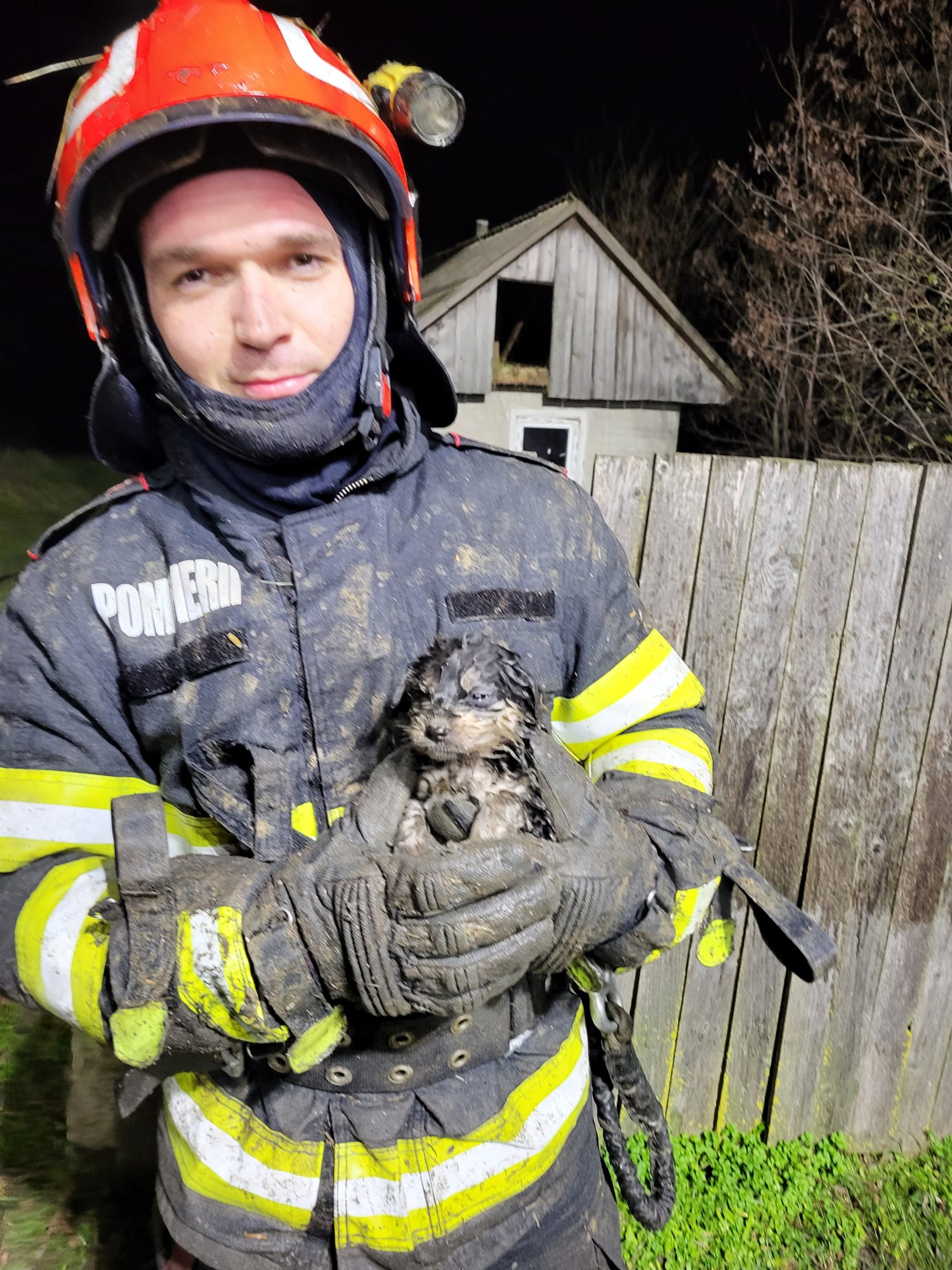 Pompierii au salvat din anexa cuprinsă de flăcări doi cățeluși.