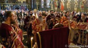 Slujba s-a desfășurat în biserica nouă a așezământului monahal, iar răspunsurile liturgice au fost oferite de Grupul psaltic „Macarie Ieromonahul” din Suceava, care a adus un plus de solemnitate evenimentului.