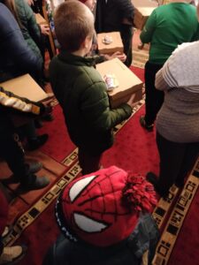 Copiii au pregătit un mic recital de colinde apoi au primit fiecare de la cei mici până la cei mari câte o pereche de ghetuțe şi dulciuri.